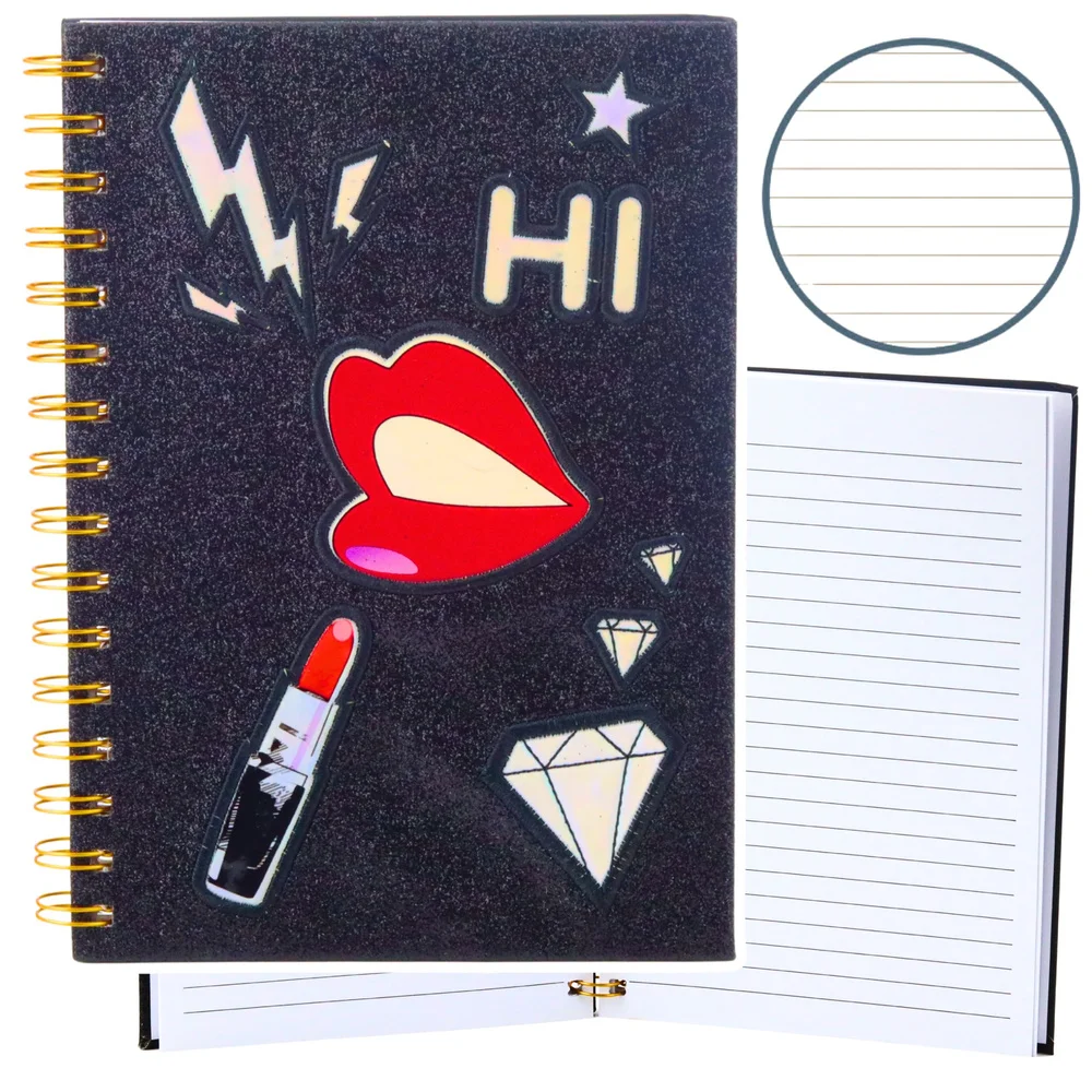 Notatnik Zeszyt W Linie Naszywki Usta Szminka Brokatowy Czarny A5 80 Kartek