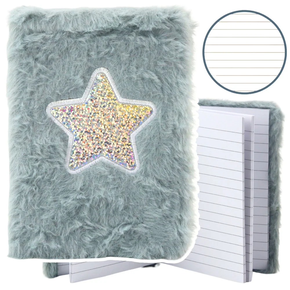 Pluszowy Notatnik W Linie Błyszcząca Gwiazda Szary A6 80 Kartek