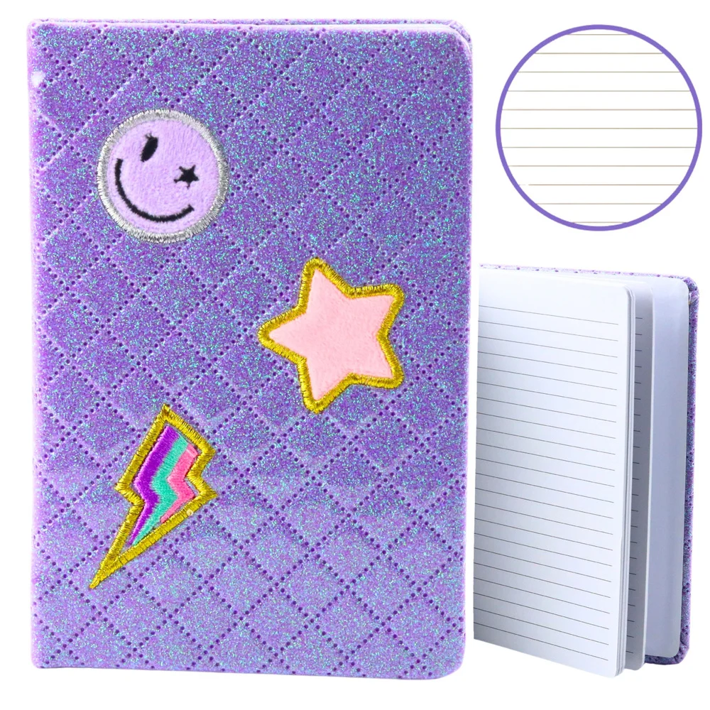 Notatnik W Linie Brokatowy Naszywki Fioletowy B6 80 Kartek