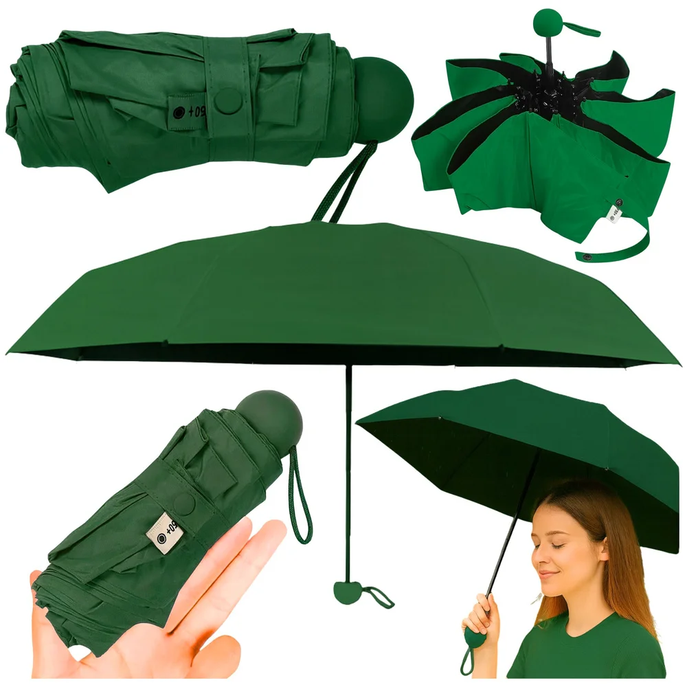 Parasolka Kieszonkowa Składana z Ochroną UV UPF 50+ Etui Zielona 90 cm