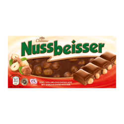 Mleczna czekolada z całymi orzechami laskowymi Nussbeisser to wyjątkowy smakołyk, który zachwyci każdego miłośnika słodkości. Wysokiej jakości orzechy laskowe (23%) zatopione w intensywnej, delikatnej czekoladzie mlecznej tworzą doskonałe połączenie smakowe.