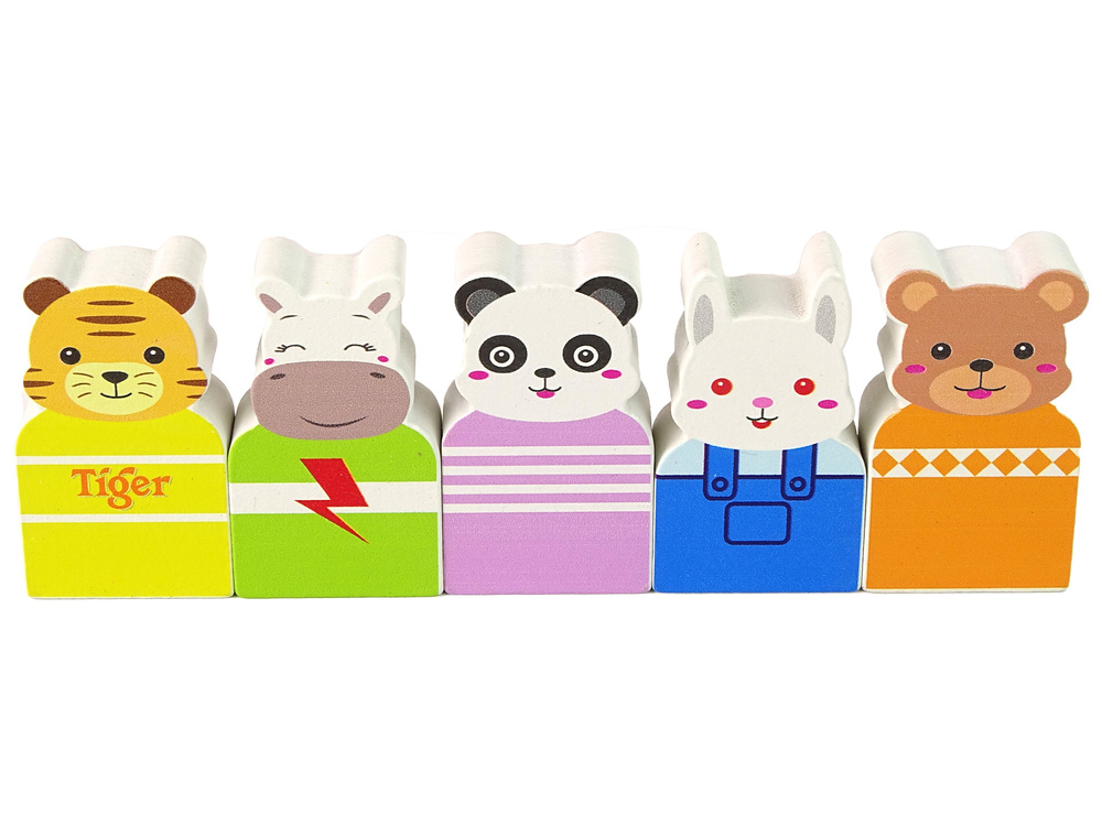 - 5 postaci zwierząt : panda, tygrys, królik, miś, hipopotam