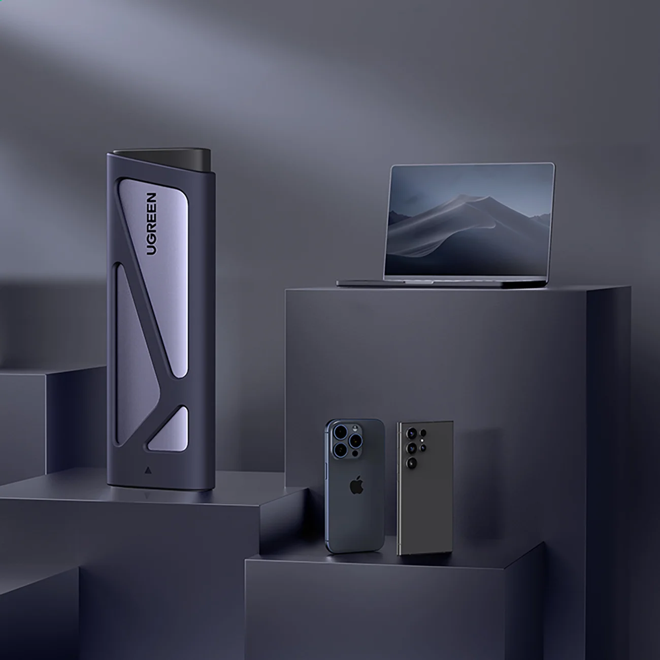 Obudowa Ugreen CM767 to praktyczne rozwiązanie dla osób, które potrzebują szybkiego dostępu do danych. Obsługuje zarówno dyski M.2 NVMe, jak i SATA, co zapewnia dużą elastyczność w wyborze pamięci masowej. Dzięki prędkości transferu danych do 10 Gb/s, przesyłanie plików staje się błyskawiczne, co jest niezwykle przydatne przy pracy z dużymi zbiorami danych, filmami czy grami.