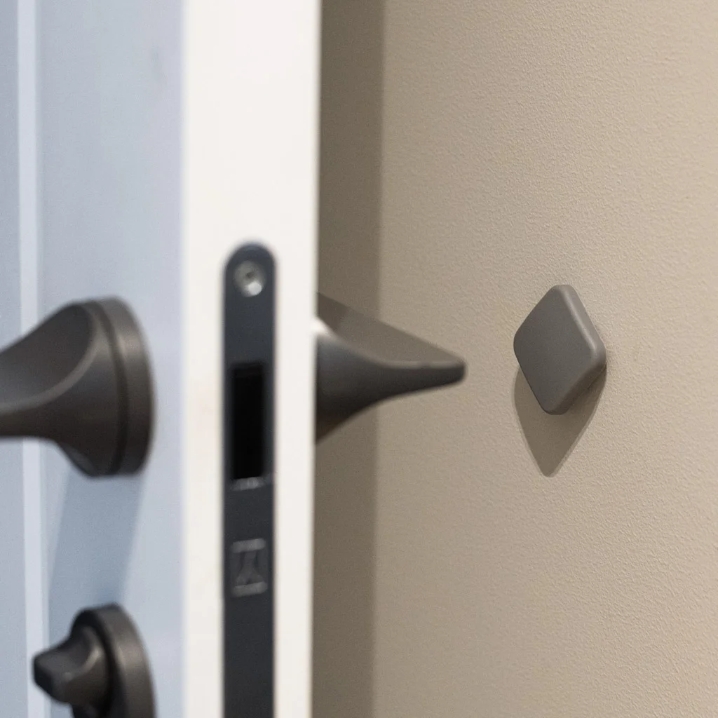 Odbojnik wykonany jest z miękkiego, ale wytrzymałego silikonu, co sprawia, że doskonale amortyzuje uderzenia i nie pozostawia śladów na uderzających go powierzchniach. Dodatkowo, jego kwadratowy kształt o wymiarach 4 cm x 4 cm zapewnia sporo ochrony dla Twoich ścian.