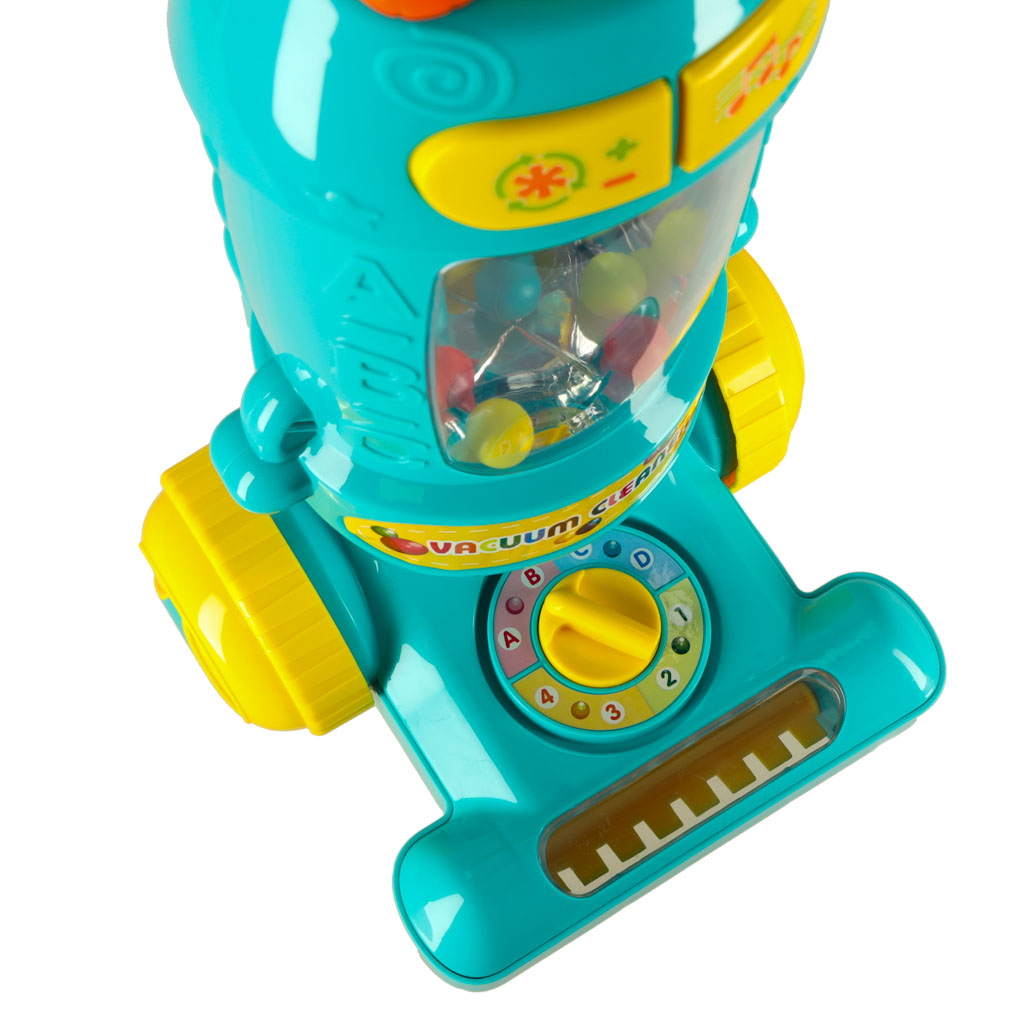 Zabawa odkurzaczem pozwala dziecku na uczestniczenie w codziennych czynnościach domowych w bezpieczny sposób, co przynosi wiele radości. Odkurzacz wyposażony jest w efekty świetlne i dźwiękowe, które uatrakcyjnią zabawę. Kolorowe światełka oraz wesołe melodyjki sprawiają, że sprzątanie staje się przyjemnością.