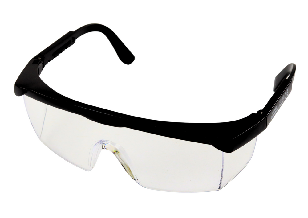 Okulary ochronne klasy optycznej 1 wyposażone są w regulowane ramiona, które umożliwiają dostosowanie długości, oraz mają czarną ramkę. Na końcach ramion znajdują się małe otwory, przez które można przewlec sznurek, co pozwala na zawieszenie okularów na szyi.