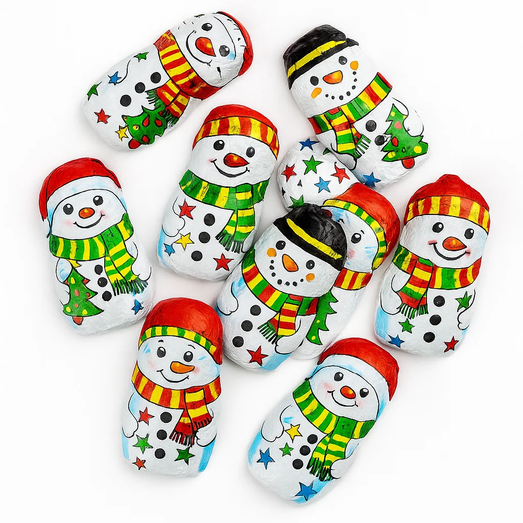 Odkryj świąteczną magię z Bałwankami Czekoladowymi! Te słodkie figurki z mlecznej czekolady to idealny sposób na dodanie uroku do świątecznego stołu. Każdy bałwanek jest wyjątkowy, a ich smak z pewnością zachwyci Twoich gości.