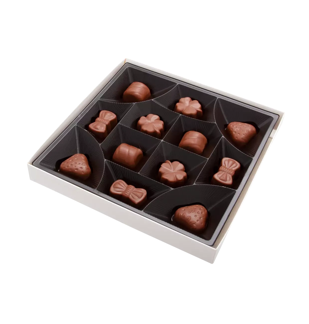 Opakowanie zdobi zabawne puzzle ze świątecznym motywem, co dodaje uroku i wprowadza w radosny nastrój. Pralinki dostępne są w dwóch wariantach kolorystycznych, które są wysyłane losowo.