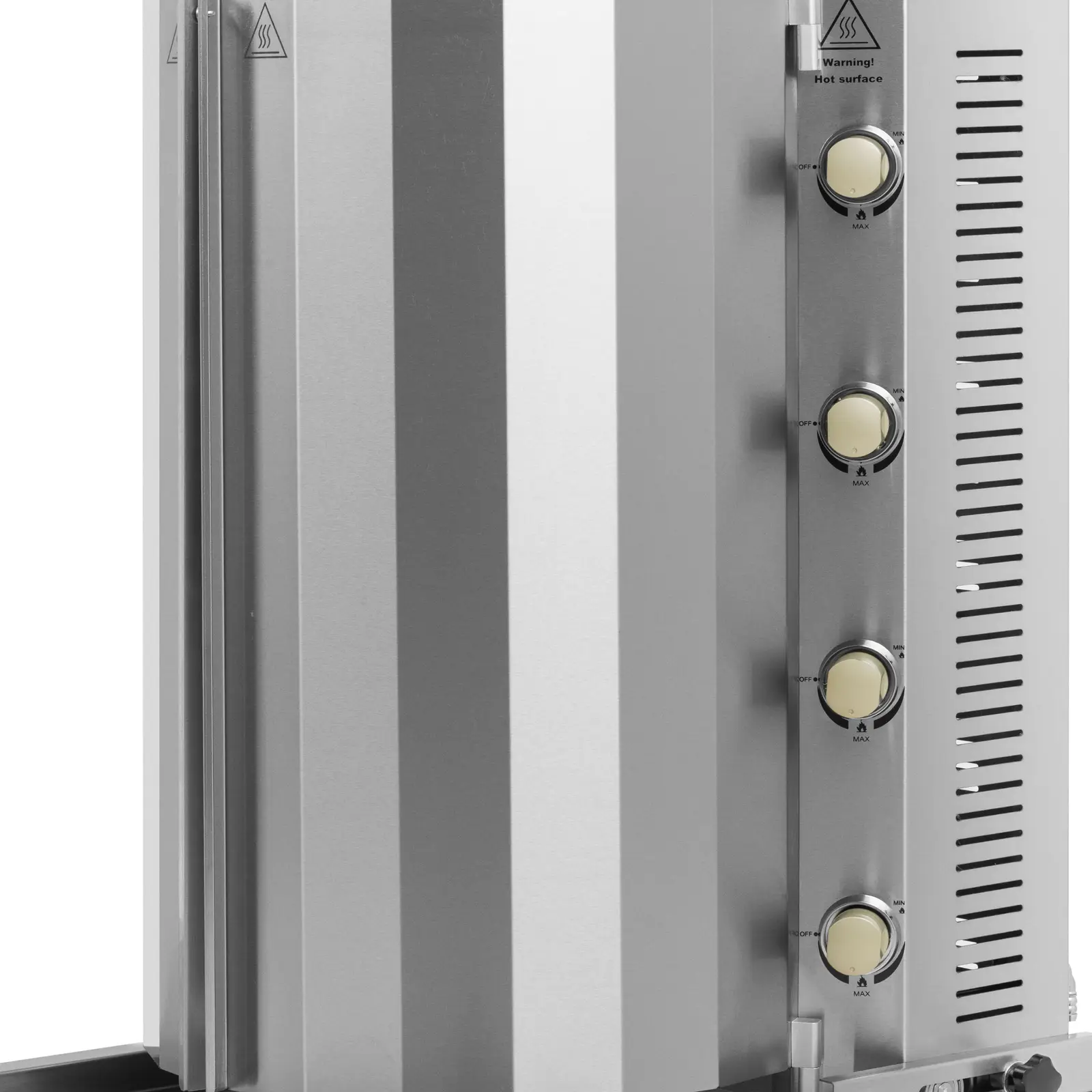 Gazowy opiekacz do kebaba marki Royal Catering to idealne rozwiązanie dla restauracji i barów szybkiej obsługi. Dzięki czterem palnikom o łącznej mocy 16 kW, urządzenie umożliwia przygotowanie do 60 kg pysznego mięsa. Grill zasilany jest propanem, butanem lub ich mieszankami, co zapewnia wygodę użytkowania.