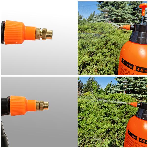 Opryskiwacz wykonany jest z wysokiej jakości tworzywa sztucznego, co zapewnia jego wytrzymałość nawet w trudnych warunkach. Mosiężna dysza gwarantuje płynne działanie i długowieczność produktu.