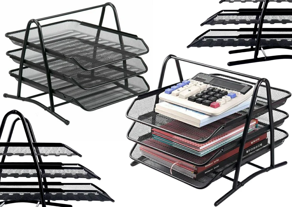 Organizer na dokumenty to idealne rozwiązanie do uporządkowania przestrzeni biurowej. Wykonany z metalowej siatki pokrytej eleganckim czarnym lakierem, łączy w sobie trwałość z nowoczesnym designem, który pasuje do każdego wnętrza. Jego uniwersalny kolor wprowadza elegancję i styl do biura, gabinetu, pokoju do nauki czy nawet w domowej przestrzeni. Dzięki prostemu, ale funkcjonalnemu wyglądowi, będzie pasował do różnych stylów wnętrz, od nowoczesnych po klasyczne.