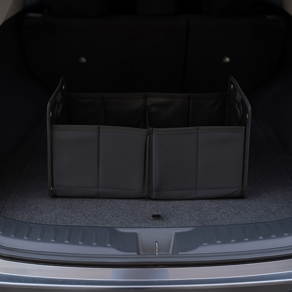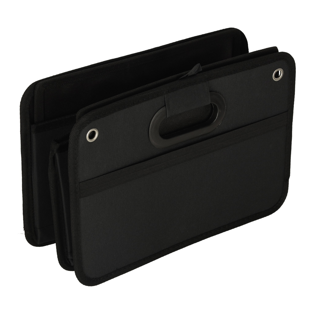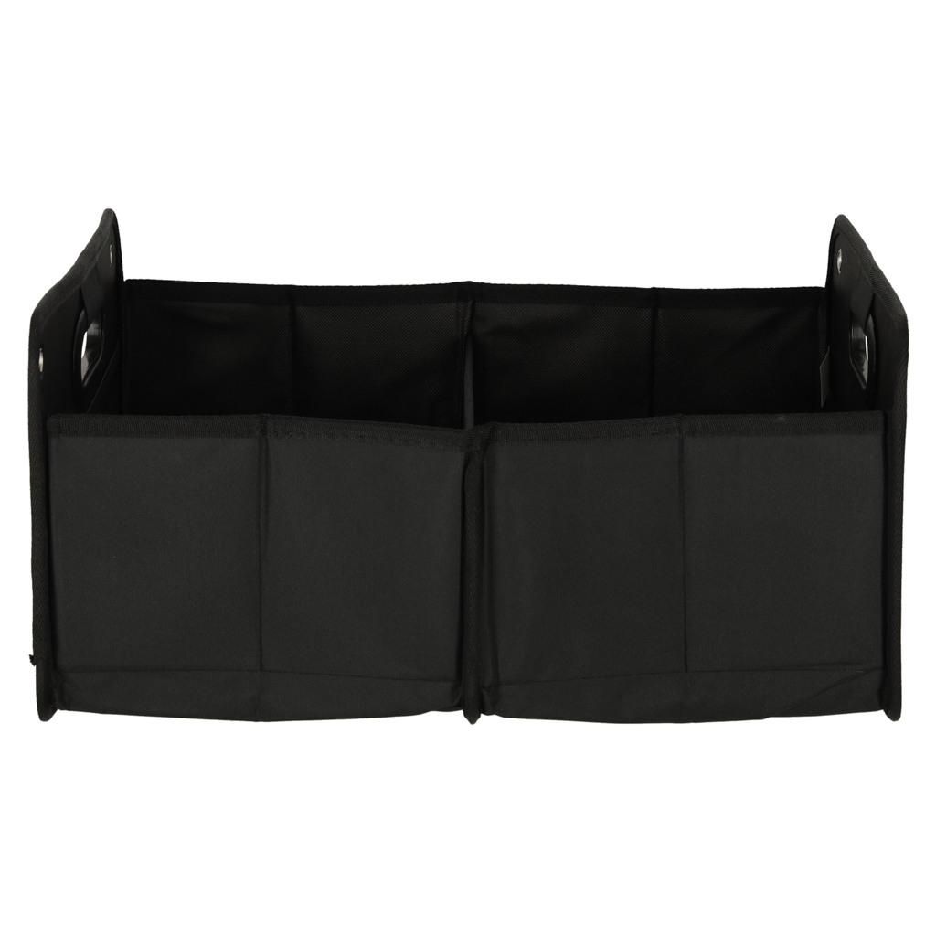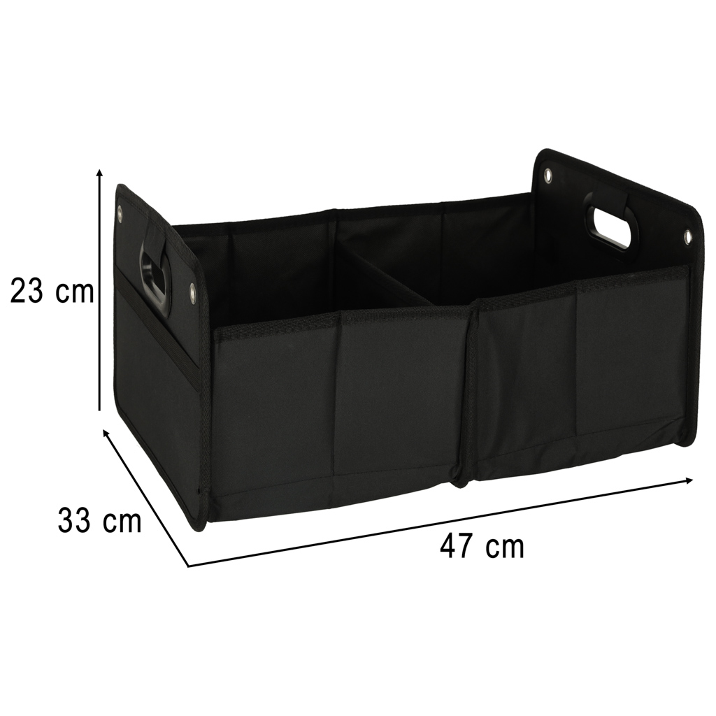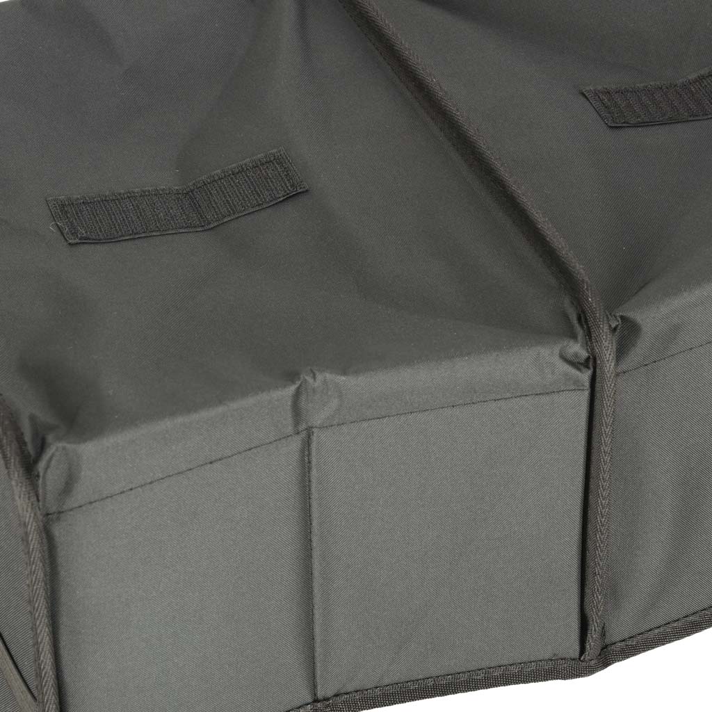 Organizer wykonany jest z tkaniny poliestrowej oxford w kolorze czarnym. Posiada 2 przegródki, które można dostosować do potrzeb, oraz jedną kieszeń z siateczki. Jego pojemność wynosi 32 litry, a maksymalne obciążenie to 20 kg.