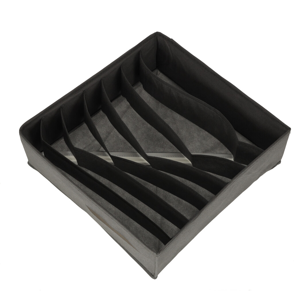 Brak pokrywy sprawia, że po otwarciu szuflady od razu zobaczysz wszystkie swoje rzeczy. Szara kolorystyka i elegancka lamówka sprawiają, że organizer wpisuje się w każde wnętrze, dodając mu stylu.