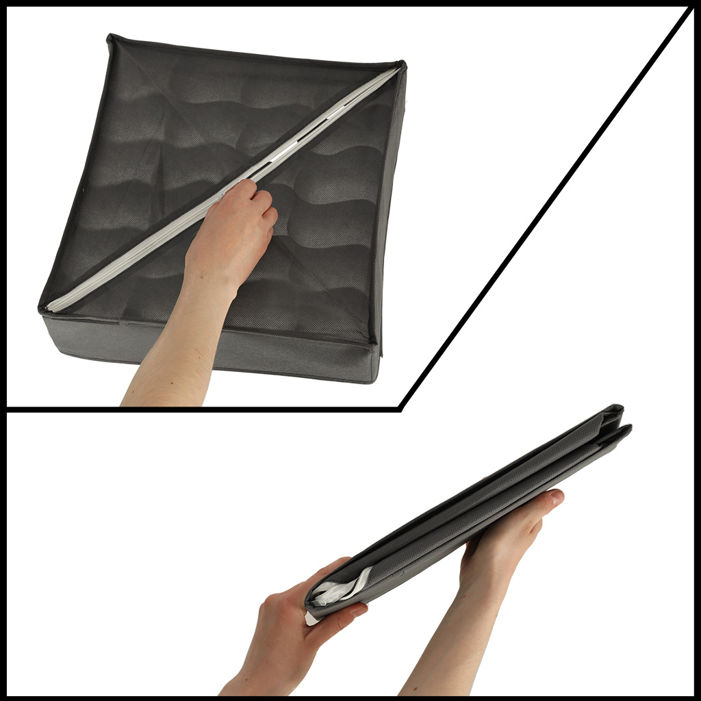 Elastyczne ścianki przegród pozwalają na dostosowanie przestrzeni do przechowywanych rzeczy. Szary kolor oraz elegancka lamówka sprawiają, że organizer będzie pasował do każdego wnętrza. Gdy nie jest potrzebny, można go łatwo złożyć, co pozwala zaoszczędzić miejsce.