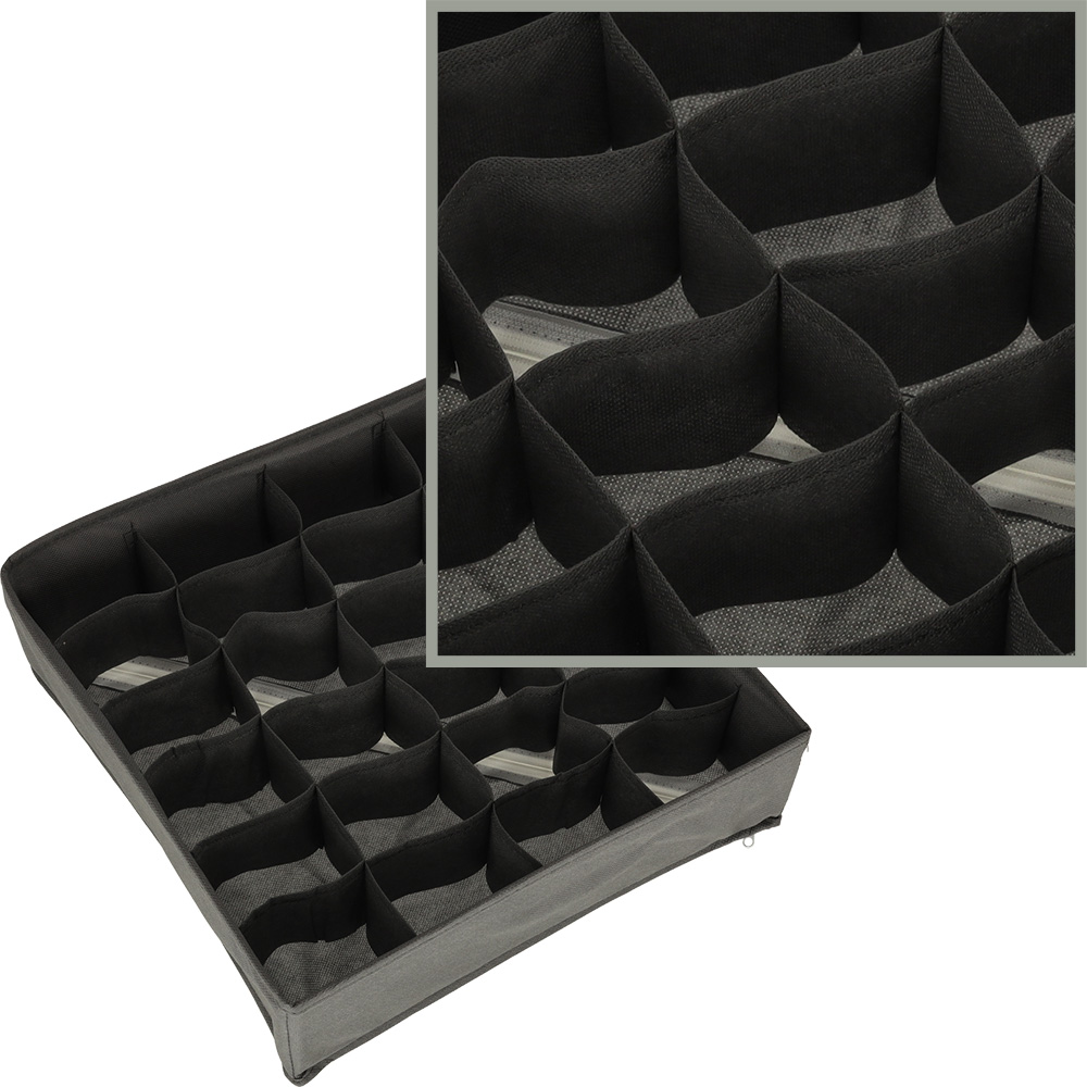 Porządek w szufladzie to klucz do łatwego dostępu do bielizny. Dzięki organizerowi na bieliznę, uporasz się z bałaganem raz na zawsze! Z 24 przegrodami, z łatwością posegregujesz skarpetki, bieliznę, krawaty czy inne akcesoria.