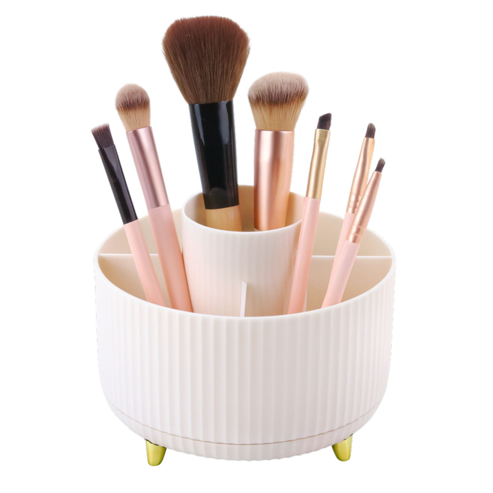 Praktyczny i stylowy organizer obrotowy na pędzle i szminki to funkcjonalne rozwiązanie, które pomoże utrzymać porządek w kosmetykach i akcesoriach do makijażu. Wyposażony w solidną, obracaną o 360° podstawę, zapewnia wygodny i szybki dostęp do wszystkich przechowywanych przedmiotów. Wystarczy lekko obrócić organizer, aby sięgnąć po wybrany produkt bez przestawiania innych rzeczy. Konstrukcja została wykonana z wysokiej jakości tworzywa ABS, które jest trwałe, odporne na uszkodzenia oraz bezpieczne w codziennym użytkowaniu.