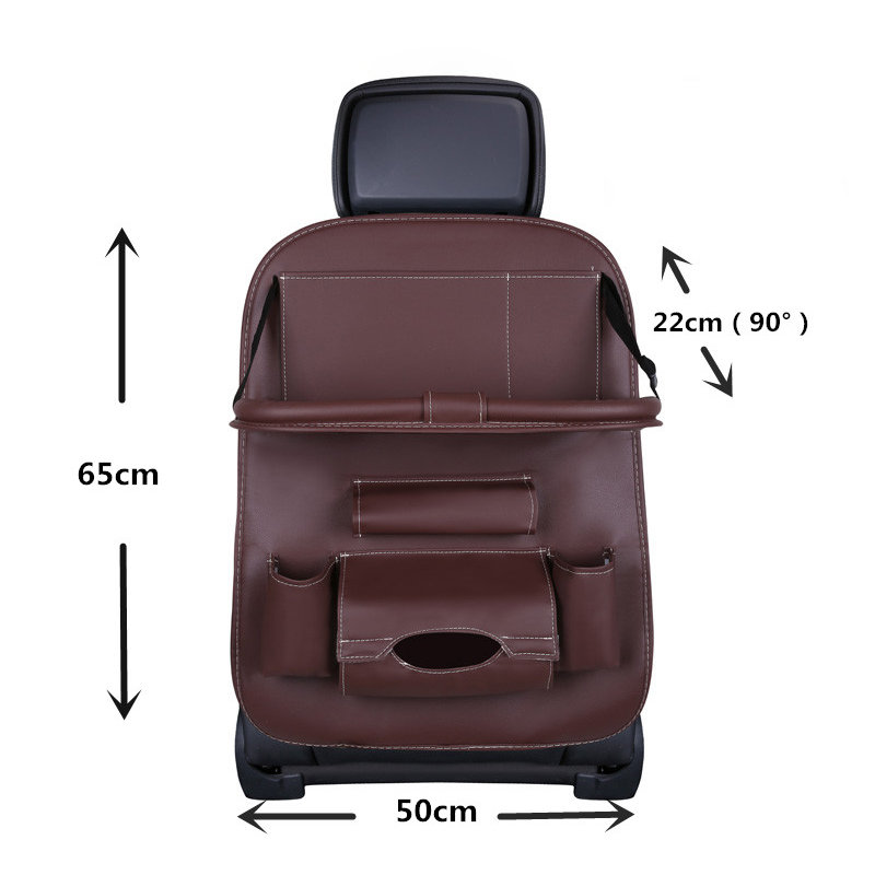 Organizer oferuje wiele przydatnych schowków oraz rozkładaną półkę, którą można ustawić w dwóch pozycjach. Dzięki temu zyskujesz dodatkowe miejsce na napoje lub inne przedmioty, które chcesz mieć w zasięgu ręki. Wykonany z wytrzymałego i wodoodpornego materiału, organizer jest łatwy do czyszczenia, a jego eko-skóra nie wchłania zabrudzeń.