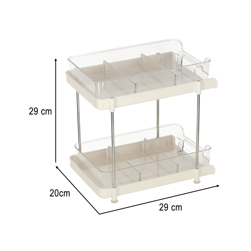 Dwu poziomowy organizer akrylowy to doskonałe rozwiązanie, które ułatwia organizację przestrzeni w każdym wnętrzu. Dzięki przemyślanej konstrukcji z wysuwanymi półkami, zyskujesz szybki dostęp do wszystkich niezbędnych drobiazgów.