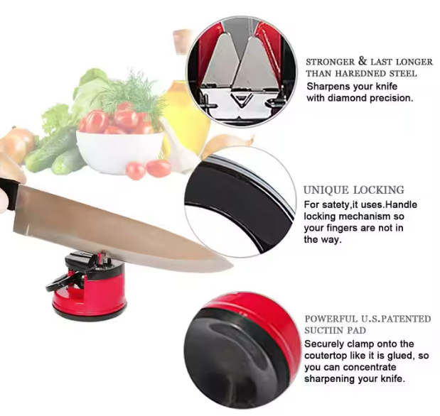 Niezawodne ostrzenie noży i nożyczek nigdy nie było tak proste i bezpieczne. Ostrzałka z przyssawką to praktyczne narzędzie kuchenne, które pozwala w kilka sekund przywrócić ostrość codziennie używanym narzędziom. Dzięki systemowi mocowania do blatu za pomocą mocnej przyssawki ostrzenie odbywa się bez potrzeby trzymania urządzenia w dłoni, co zdecydowanie zwiększa bezpieczeństwo.