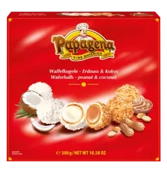 Papagena Kulki Waflowe z Orzeszkami Ziemnymi i Kokosem to idealna przekąska na wyjątkowe chwile. Te dwie kulki, kokosowa i orzechowa, z pewnością umilą każdy moment.