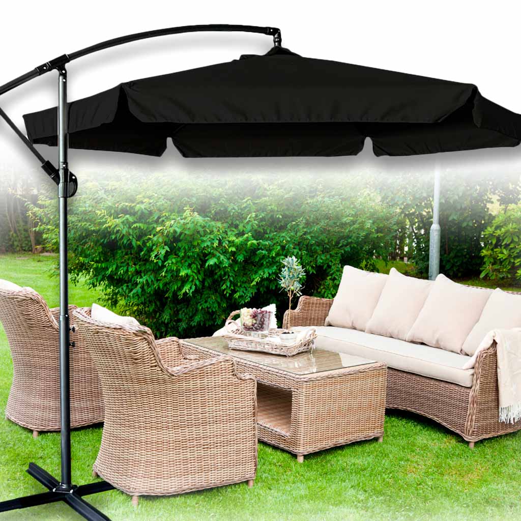 Stwórz elegancki kącik relaksu w ogrodzie lub na tarasie dzięki dużemu parasolowi ogrodowemu z wysięgnikiem. Model ten łączy estetykę z funkcjonalnością, oferując komfortowy cień w słoneczne dni.