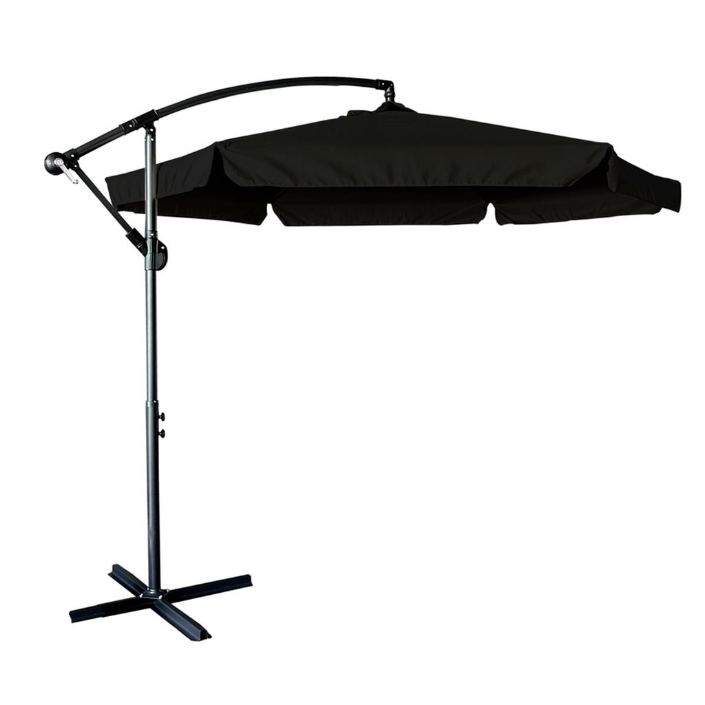 Czarny kolor parasola doskonale komponuje się z każdą aranżacją ogrodu. W zestawie znajduje się pokrowiec ochronny, który zabezpiecza czaszę przed kurzem i wilgocią, a system wentylacji poprawia cyrkulację powietrza.