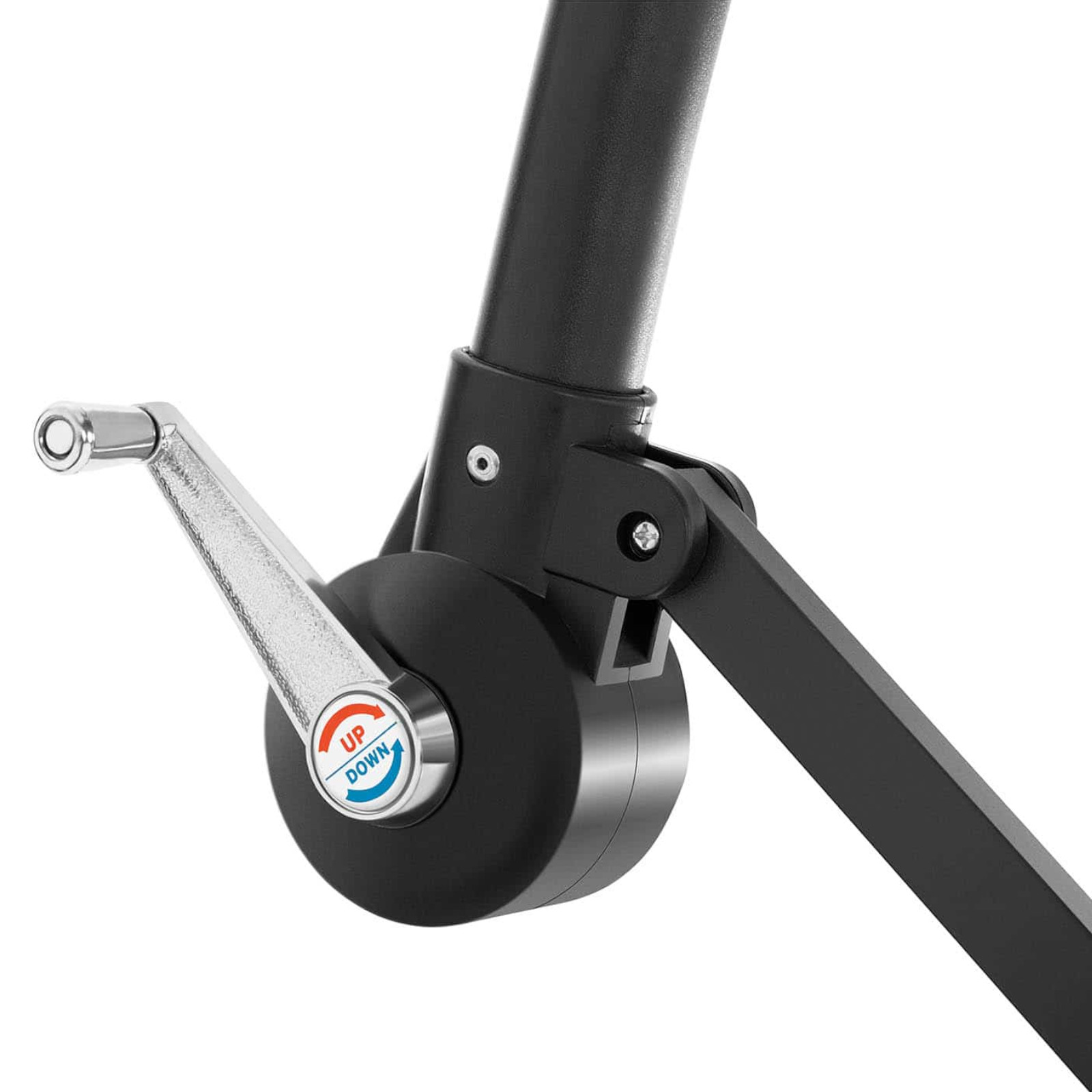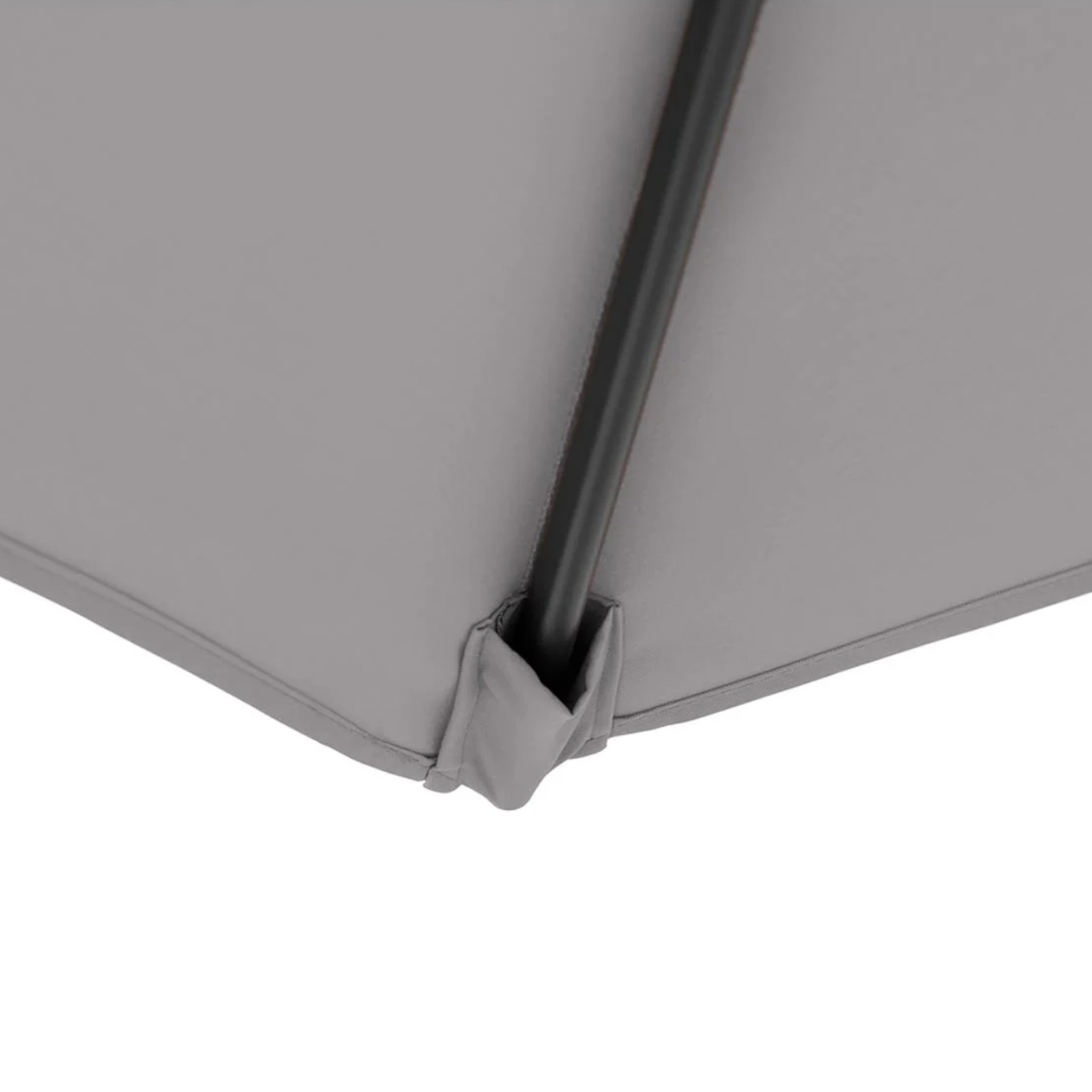 Parasol na wsporniku oszczędza miejsce, można go ustawić blisko ściany lub przy stołach. Dodatkowo, podstawa z otworami do zamocowania stwarza możliwość dostosowania do różnych warunków. Dla większej stabilności zaleca się dokupienie podstawy do parasola.