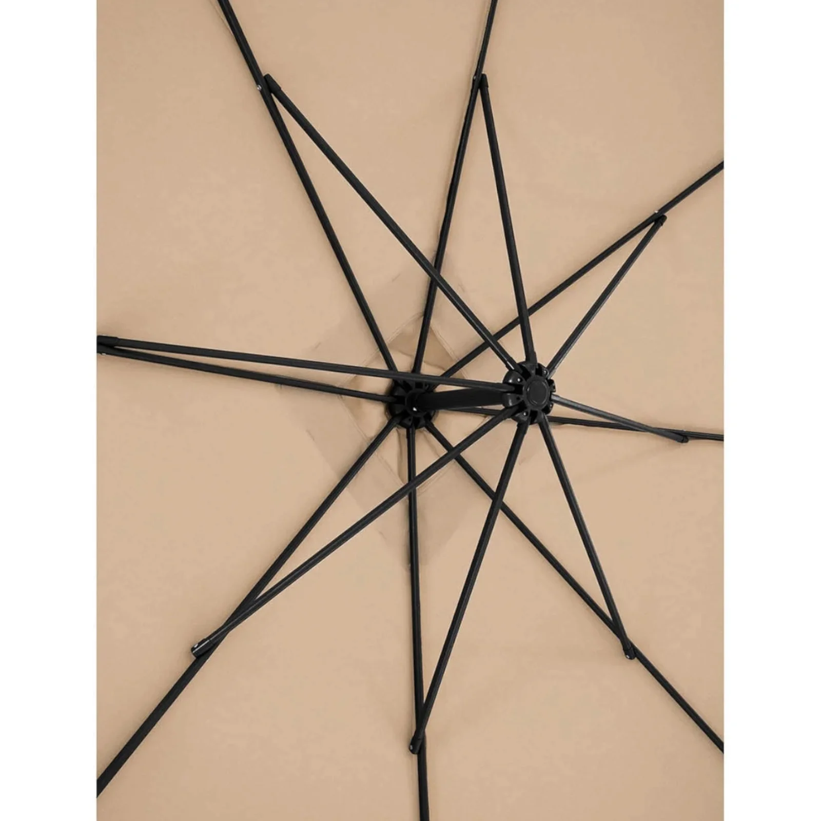 Stalowy słupek o średnicy 48 mm oraz osiem żeber gwarantują stabilność konstrukcji. Zastosowany system ochrony przed wiatrem sprawia, że parasol jest stabilny nawet w trudnych warunkach atmosferycznych. Dodatkowo, konstrukcja na wsporniku pozwala na oszczędność miejsca, co umożliwia ustawienie parasola blisko ściany lub obok stołów. Podstawa z otworami do zamocowania za pomocą śrub zwiększa jego stabilność.