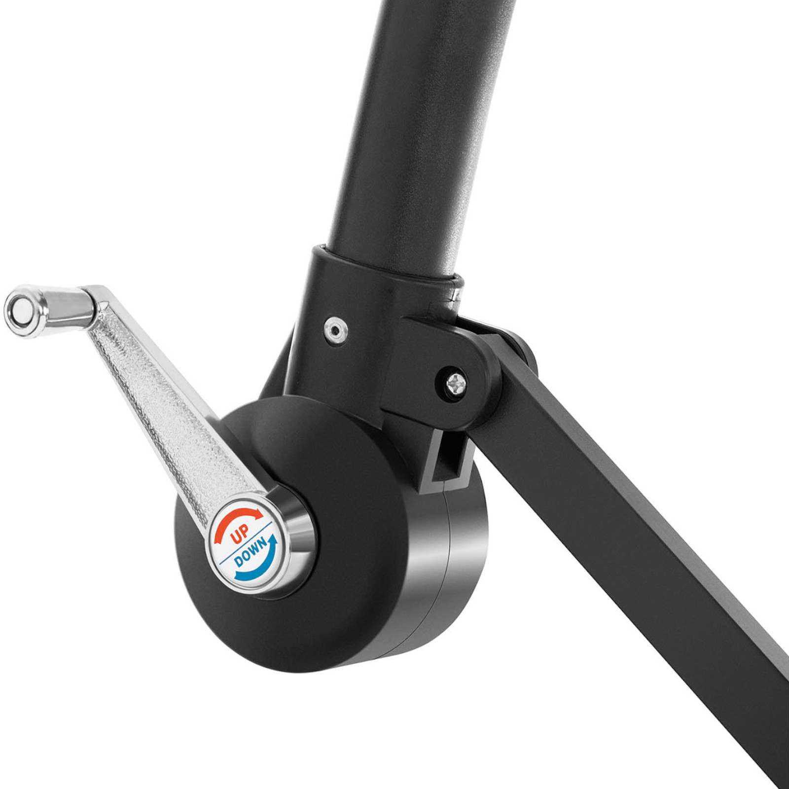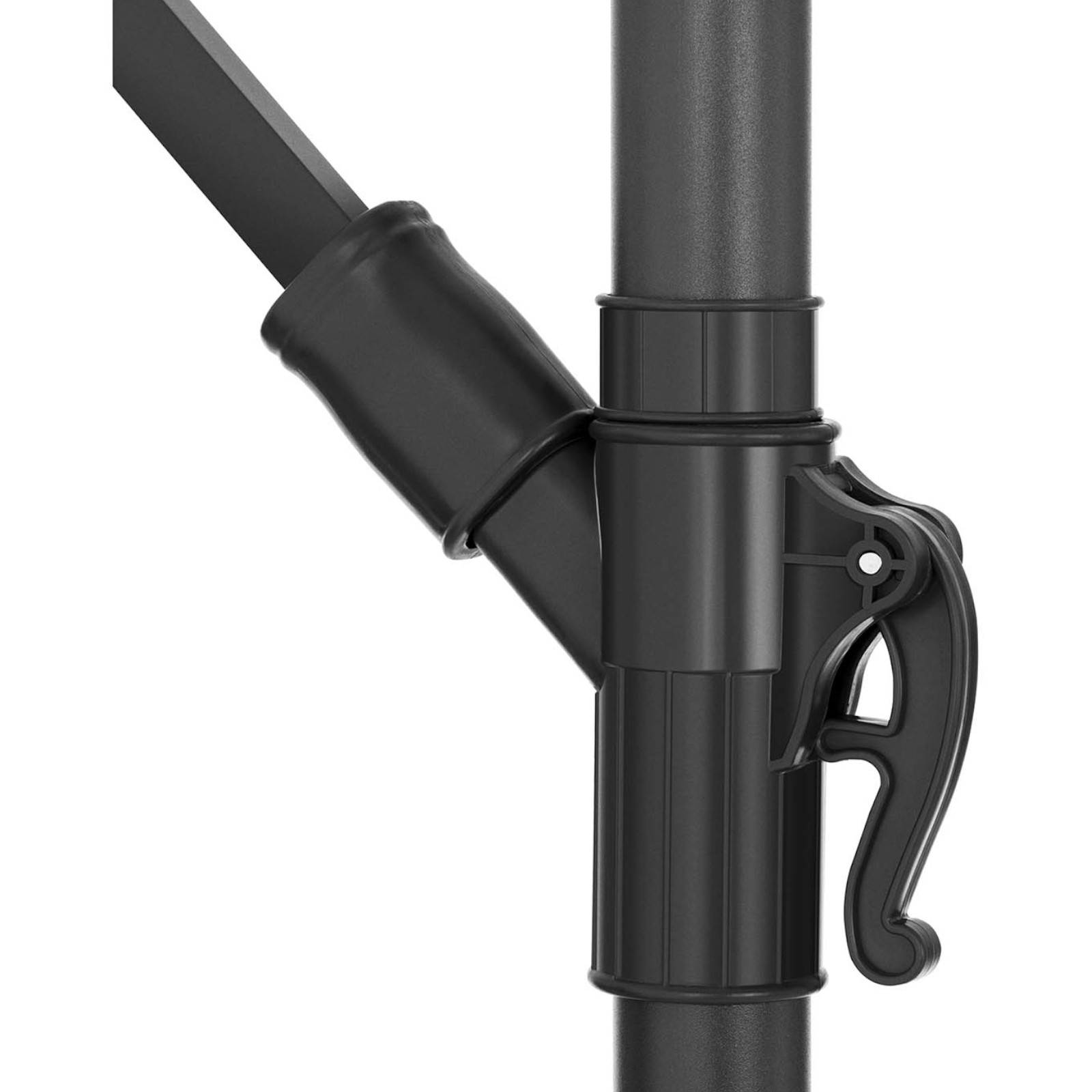 Parasol jest również praktyczny – dzięki wspornikowi można go ustawić blisko ściany lub stołów, oszczędzając miejsce. Stalowa podstawa z otworami umożliwia przymocowanie parasola w wybranym miejscu, co dodatkowo zwiększa jego stabilność.