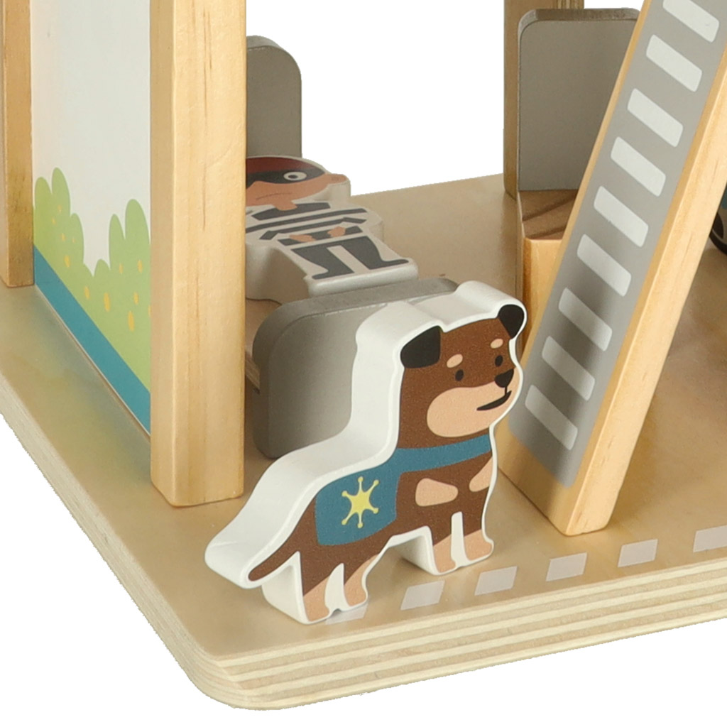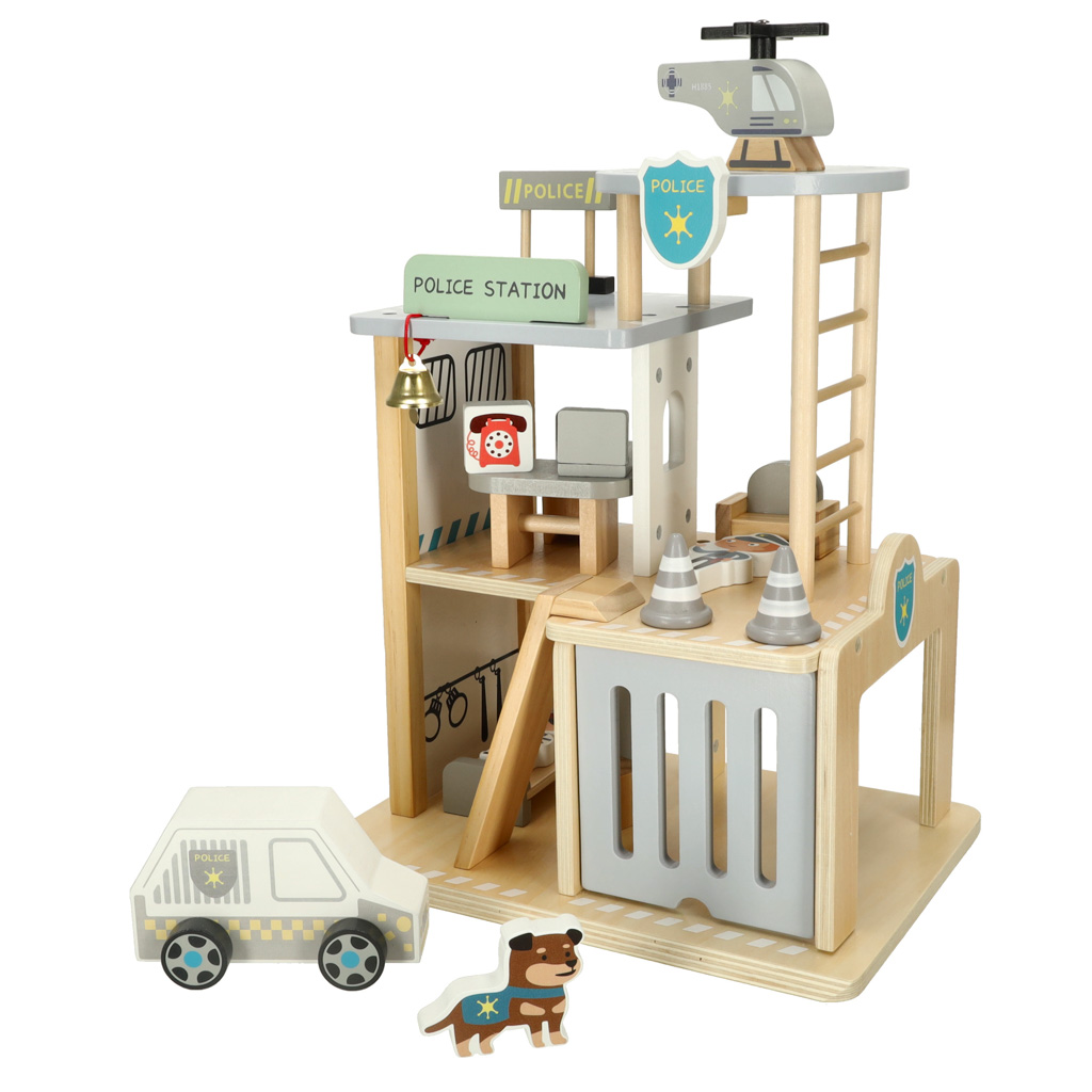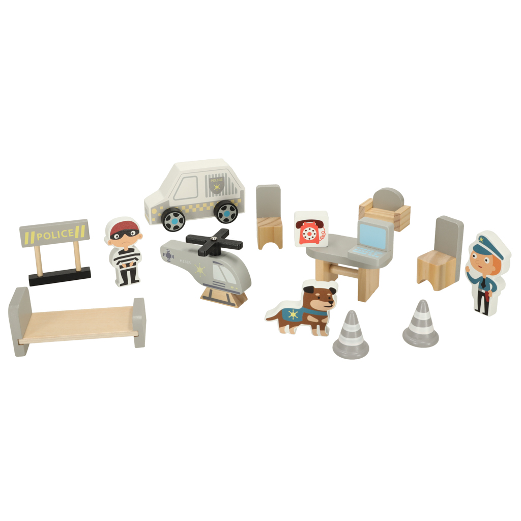 Wszystkie elementy zestawu wykonane są z wysokiej jakości drewna, co zapewnia trwałość oraz bezpieczeństwo użytkowania. Minimalistyczny design sprawia, że komisariat pięknie prezentuje się w dziecięcym pokoju, stanowiąc jednocześnie ciekawą ozdobę.