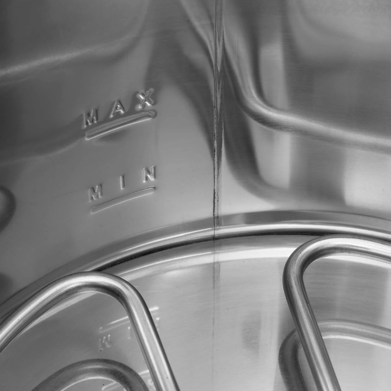 Wszystkie elementy parowaru, w tym obudowa i pokrywa, wykonane są z wysokiej jakości stali nierdzewnej, co zapewnia łatwość w czyszczeniu i wysoką odporność na uszkodzenia. Dodatkowo, lampka kontrolna informuje o statusie urządzenia.