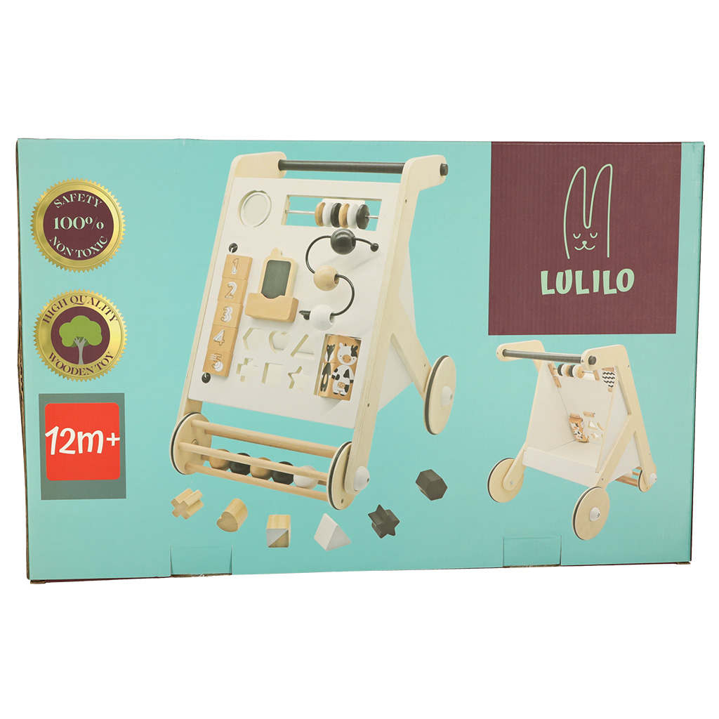 Pchacz dla dziecka chodzik drewniany tablica manipulacyjna sorter