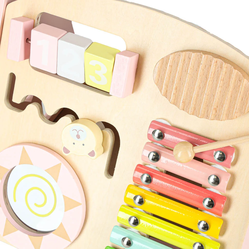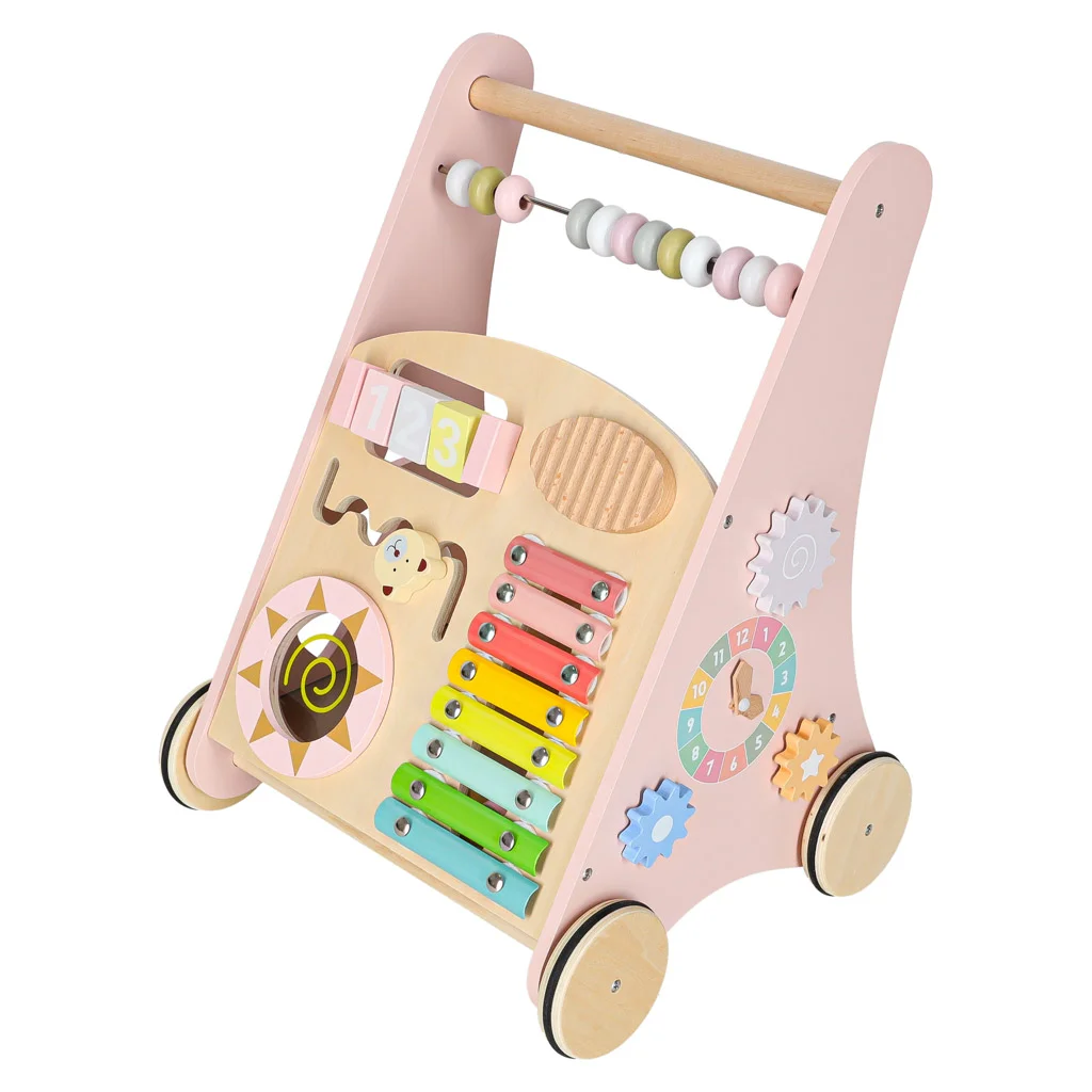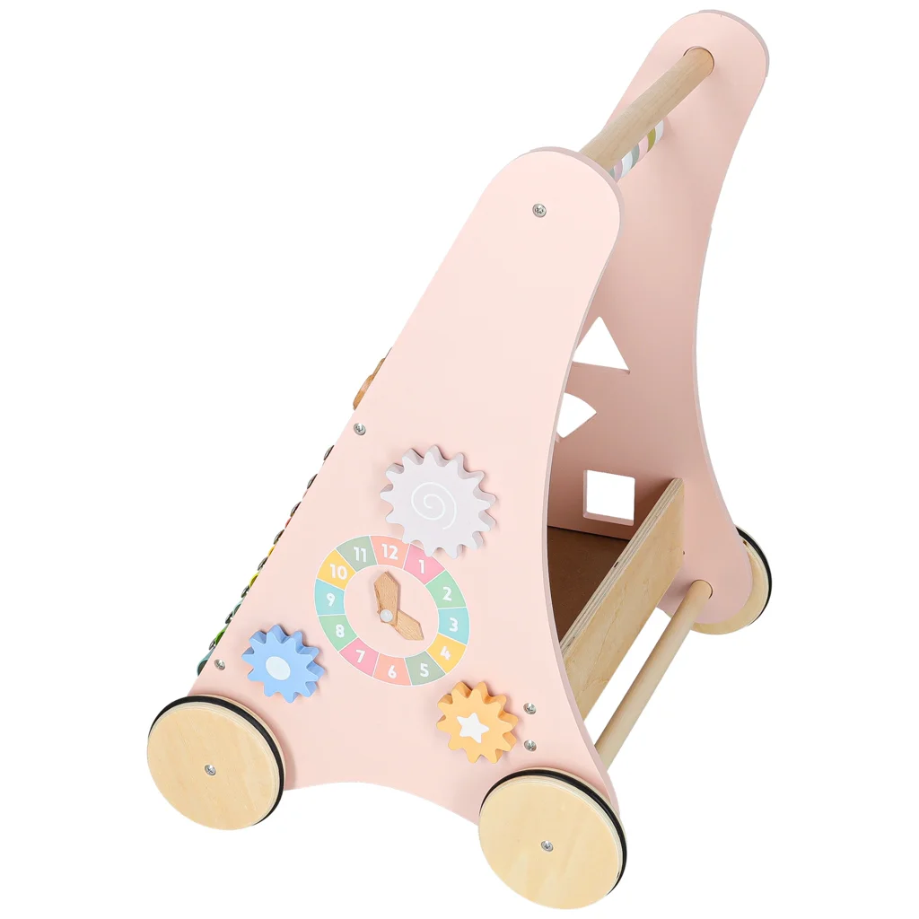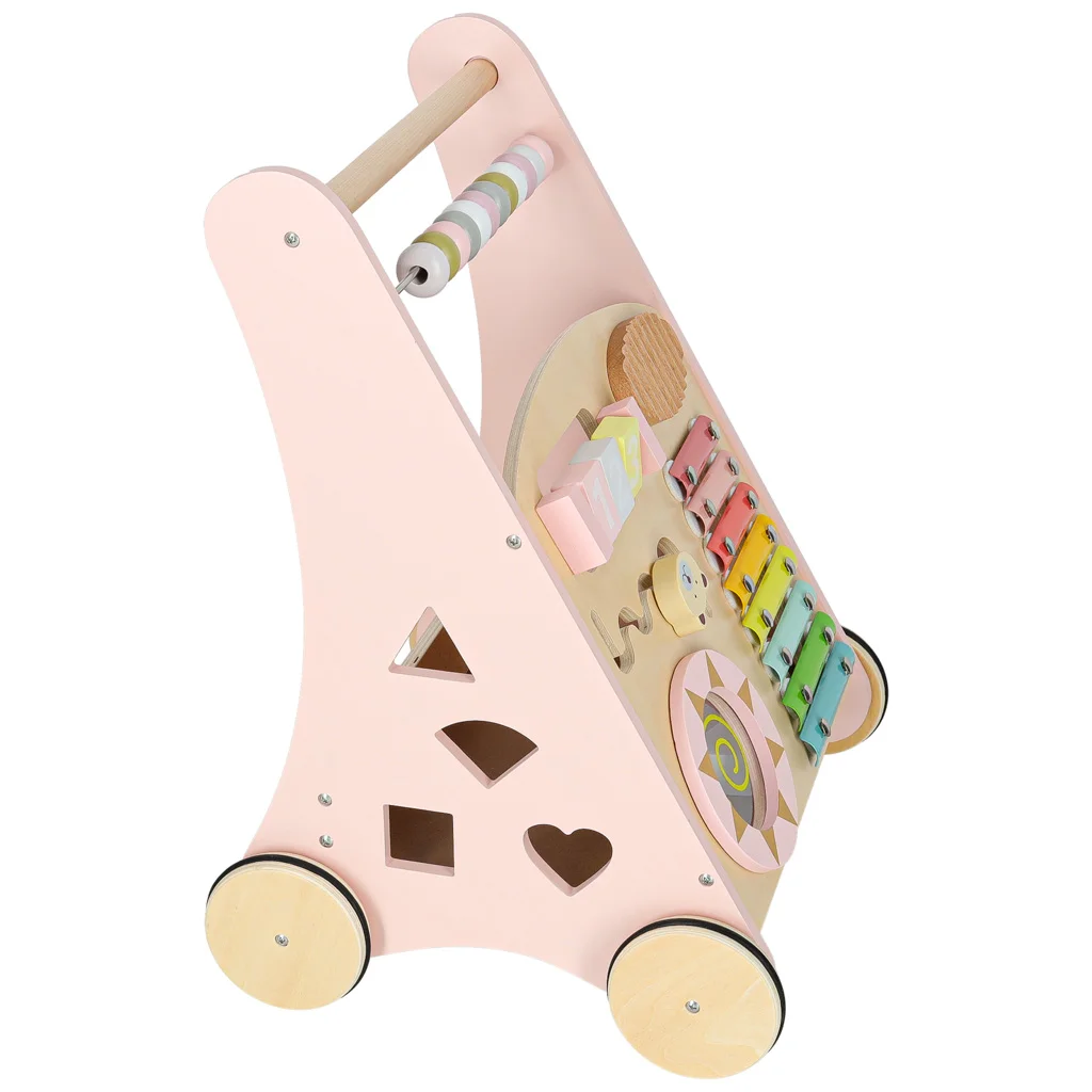 Oferujemy wyjątkowy drewniany chodzik edukacyjny, który jest nie tylko pchaczem, ale także centrum aktywności dla Twojego dziecka. Zapewnia on wsparcie w nauce chodzenia oraz rozwój sensoryczny i manualny, co czyni go doskonałą zabawką dla maluchów.
