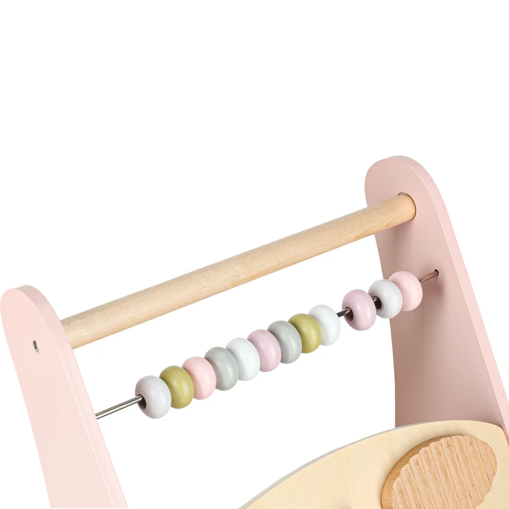 Pchacz dla dziecka - Chodzik drewniany z liczydłem w kolorze różowym