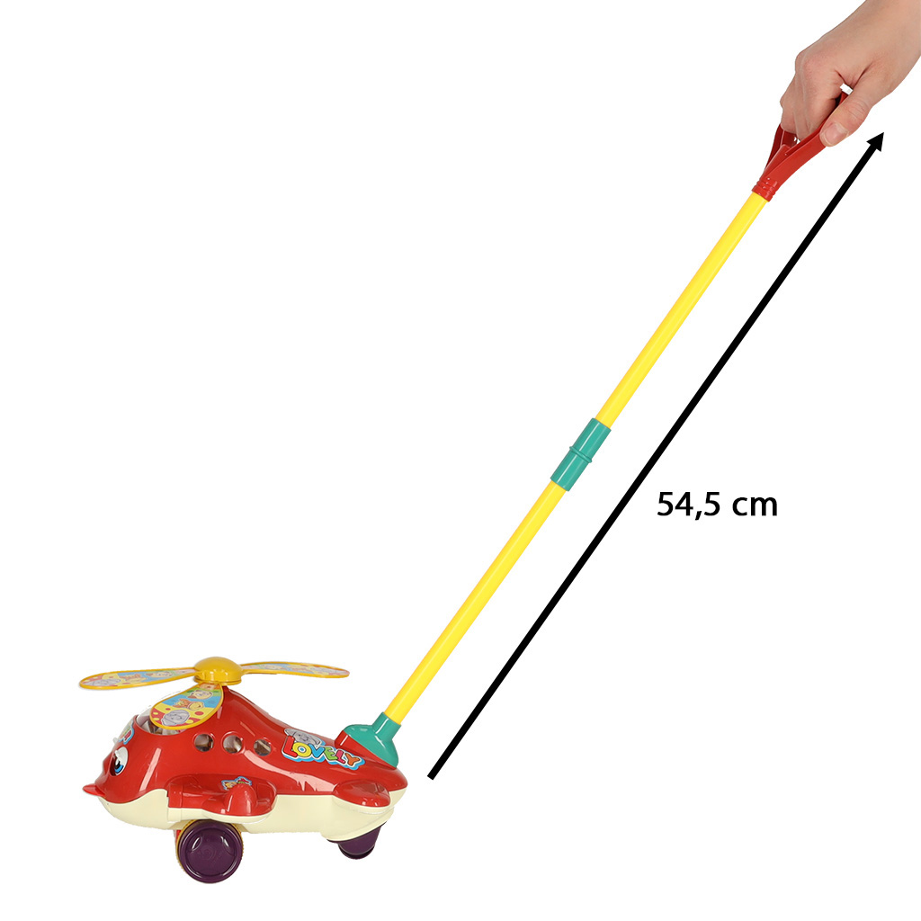 Pchacz w kształcie samolotu to idealny towarzysz podczas rodzinnych spacerów. Czerwony helikopter z pewnością przyciągnie uwagę każdego dziecka!