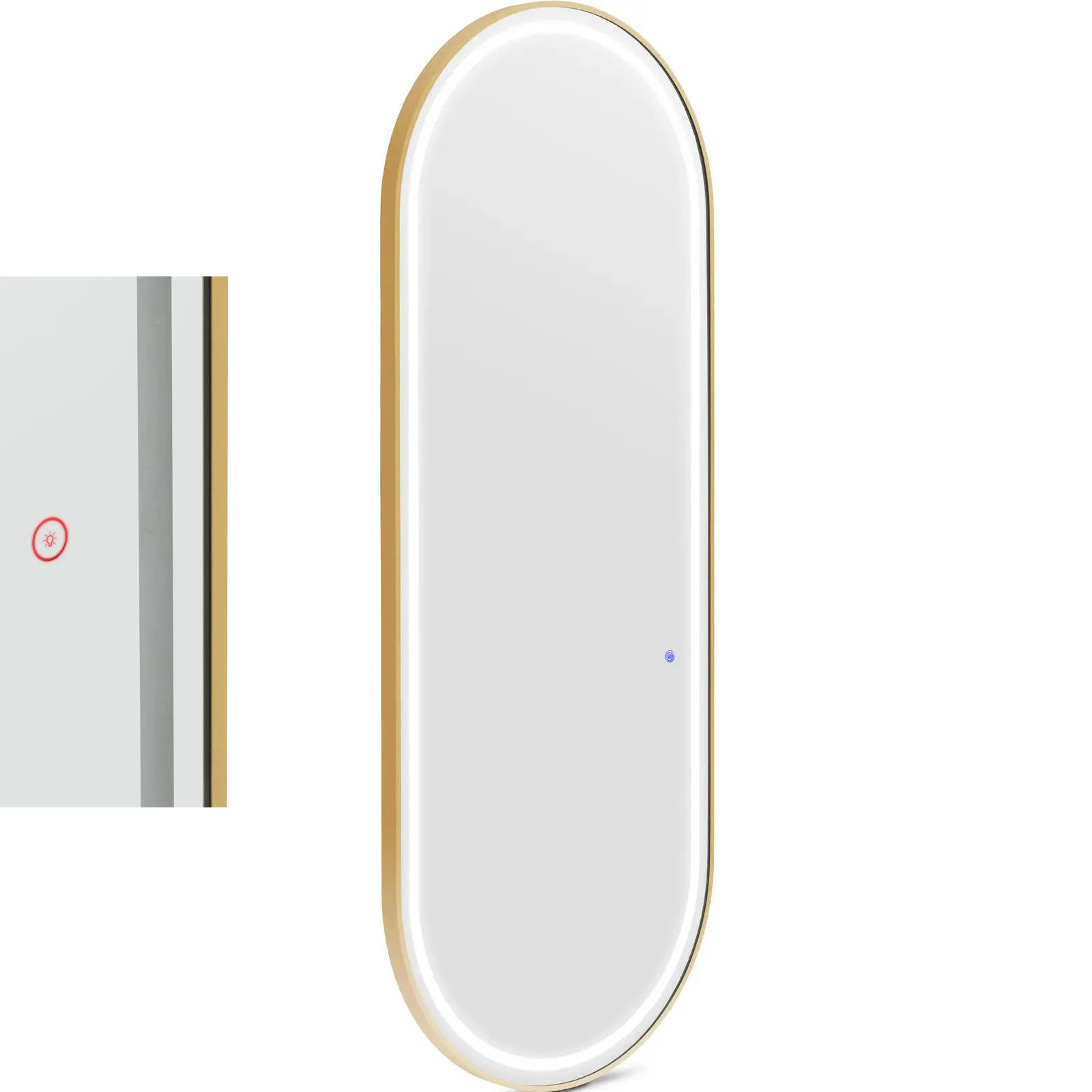 Konsola konsoleta fryzjerska lustro z oświetleniem LED owalne 180 x 70 cm - złote