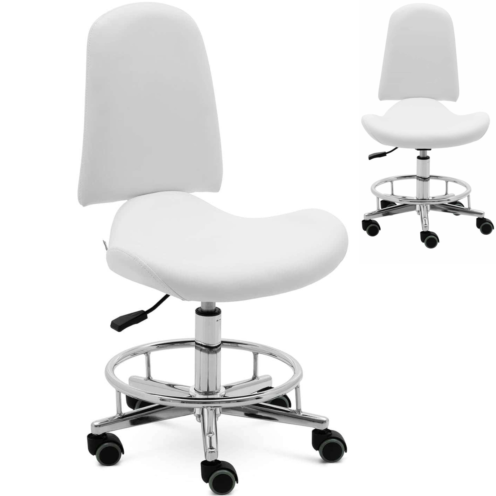 Krzesło kosmetyczne obrotowe z oparciem na kółkach 45-59 cm GLAND - białe