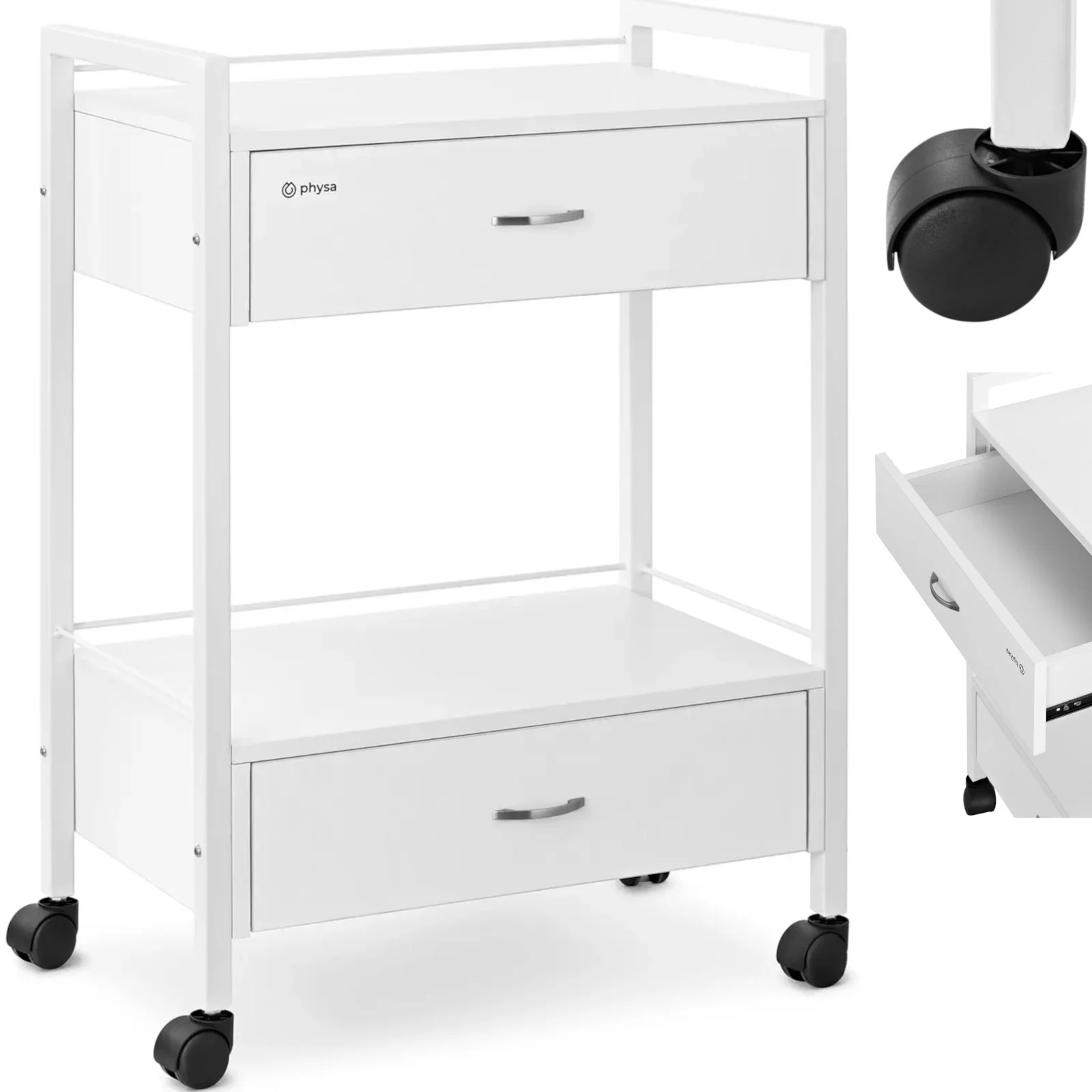 Wózek pomocnik kosmetyczny 1 szuflada 3 półki do 80 kg 54 x 38 x 90 cm - biały