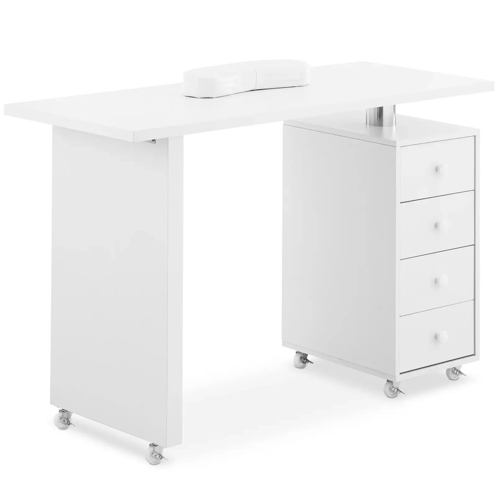 Biurko kosmetyczne do manicure z podpórka na dłonie 4 szuflady 119 x 45 cm - białe