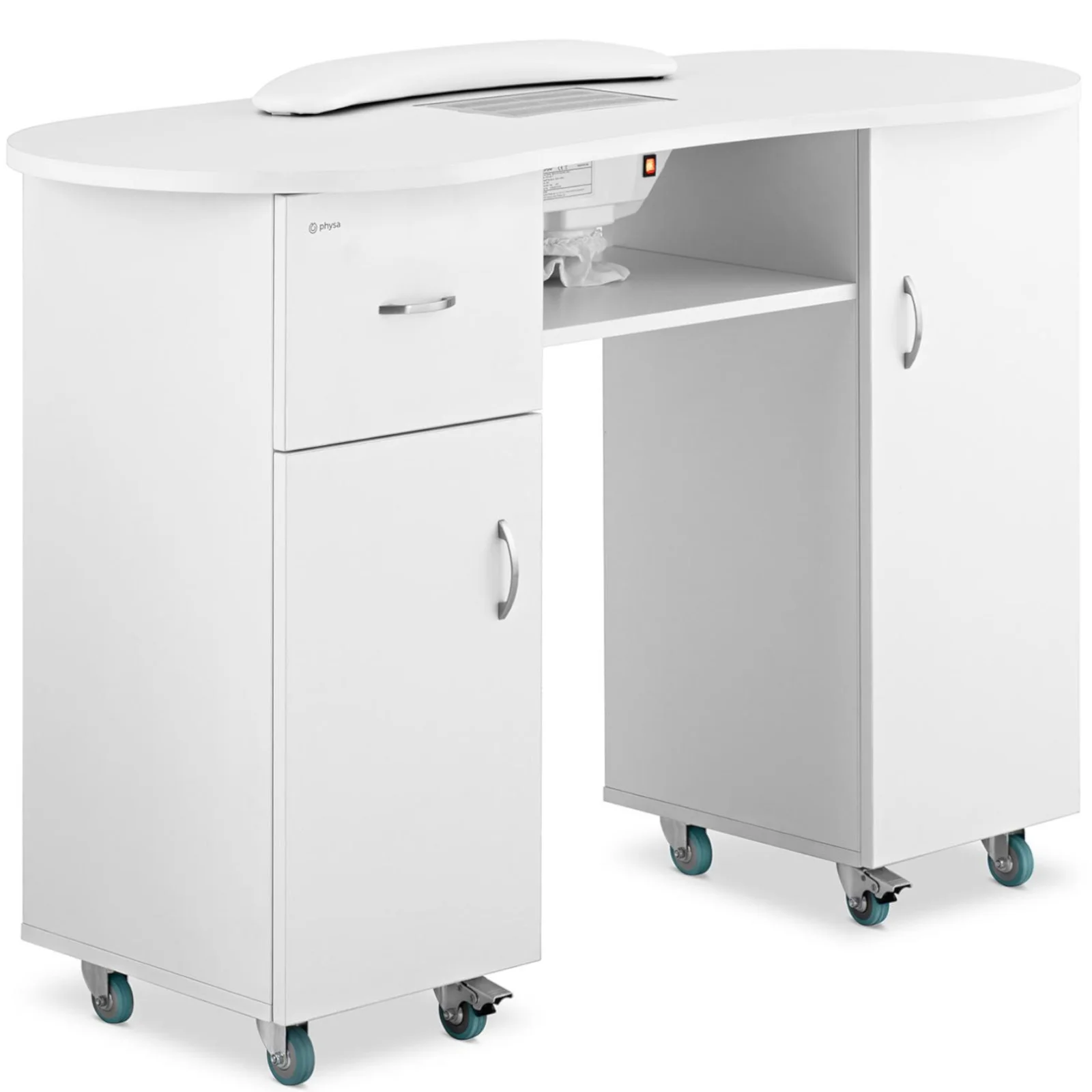 Biurko stolik do manicure kosmetyczny z pochłaniaczem pyłu i szafkami na kółkach 120x50x80 cm biały