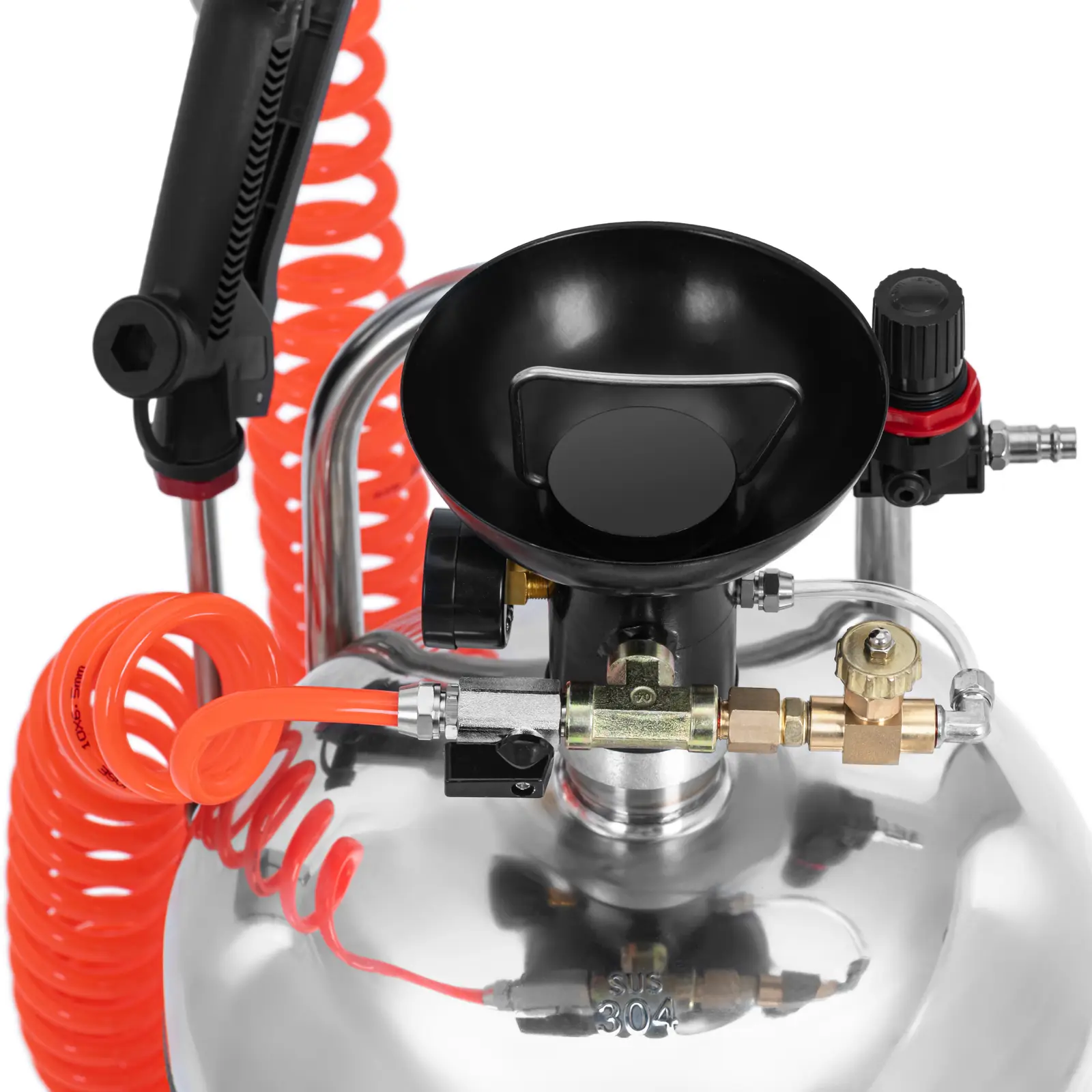 Dzięki zastosowaniu kółek na łożyskach kulkowych oraz uchwytu, transport urządzenia jest niezwykle łatwy. Elastyczny wąż zapewnia dużą swobodę ruchów, a możliwość regulacji dyszy pozwala na dostosowanie ilości piany do indywidualnych potrzeb użytkownika. Napełnianie jest również komfortowe dzięki dużemu lejkowatemu wlotowi.