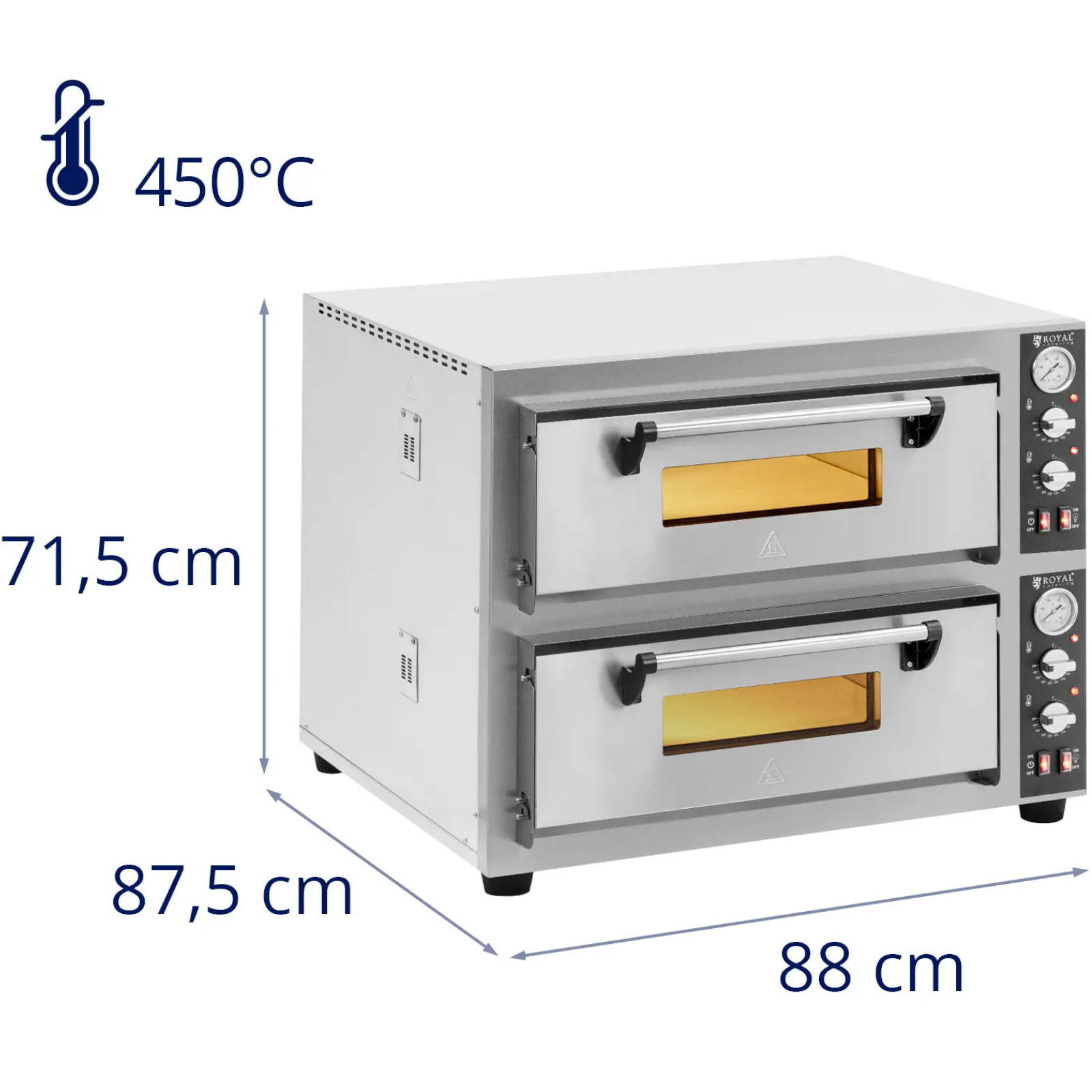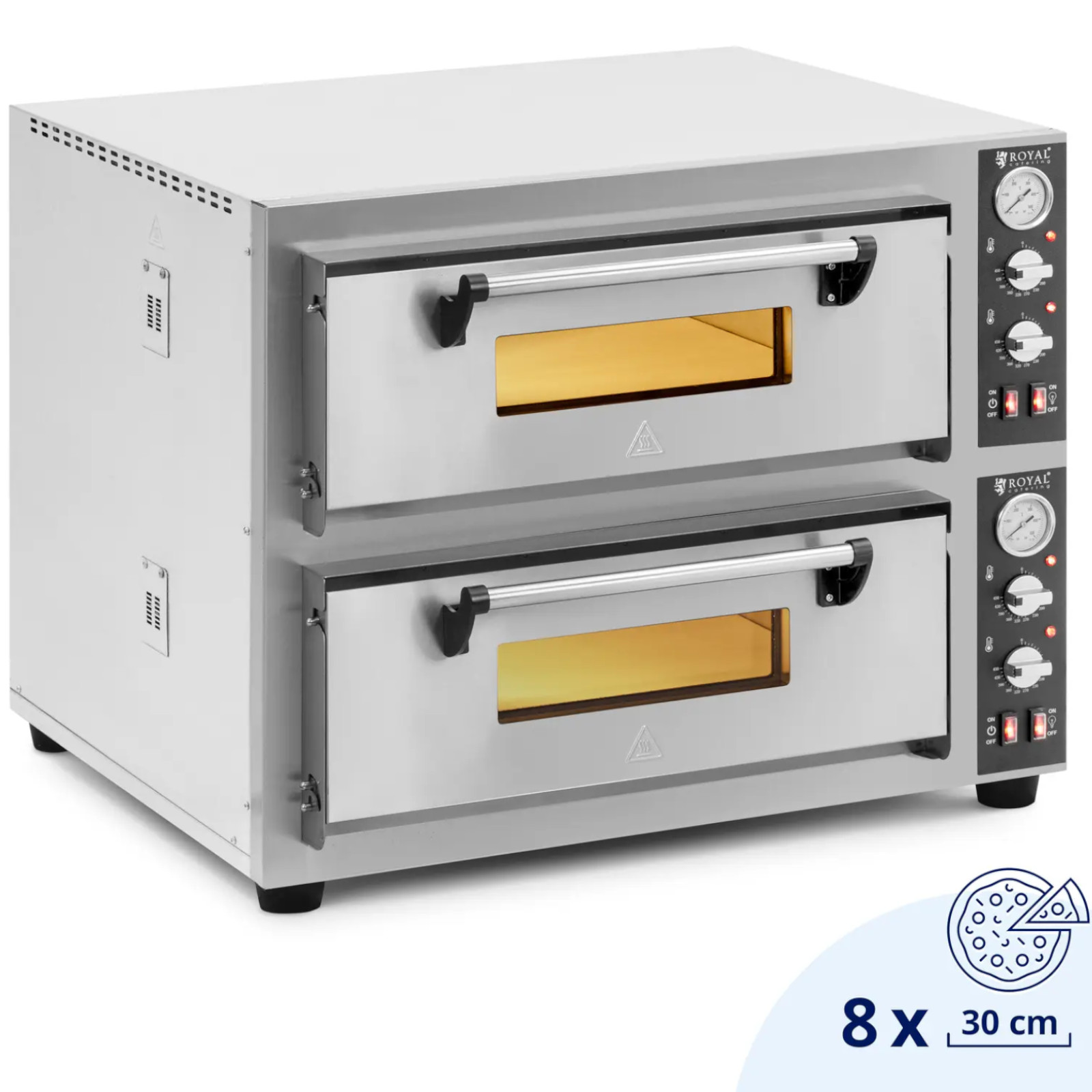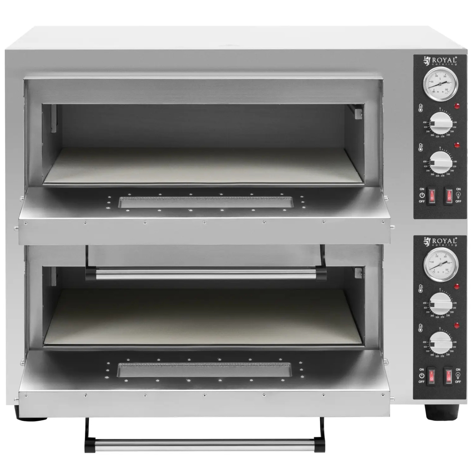 Piec do pizzy marki Royal Catering to idealne rozwiązanie dla pizzerii, kawiarni i barów. Dzięki dwóm dużym komorom, które pomieszczą 8 pizz o średnicy 30 cm, z łatwością przygotujesz różnorodne wypieki, takie jak pizza, focaccia czy lahmacun.