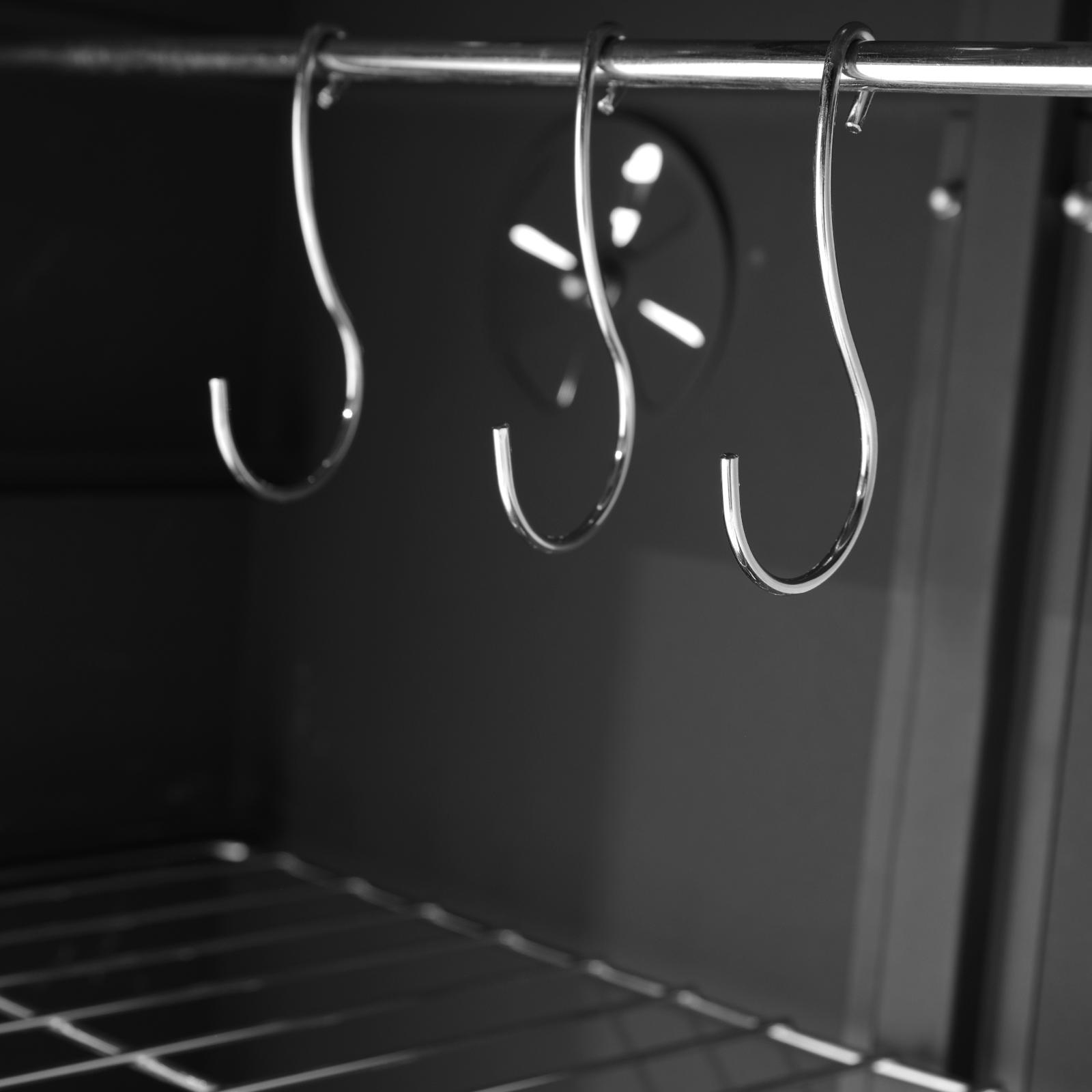 Piec charakteryzuje się kompaktowymi wymiarami oraz solidnym wykonaniem z trwałej stali nierdzewnej. Oferuje podwójnie izolowane drzwi, które zamykają się na magnes, a także termostat do precyzyjnej regulacji temperatury. Wbudowany termometr w drzwiach ułatwia monitorowanie procesu wędzenia.