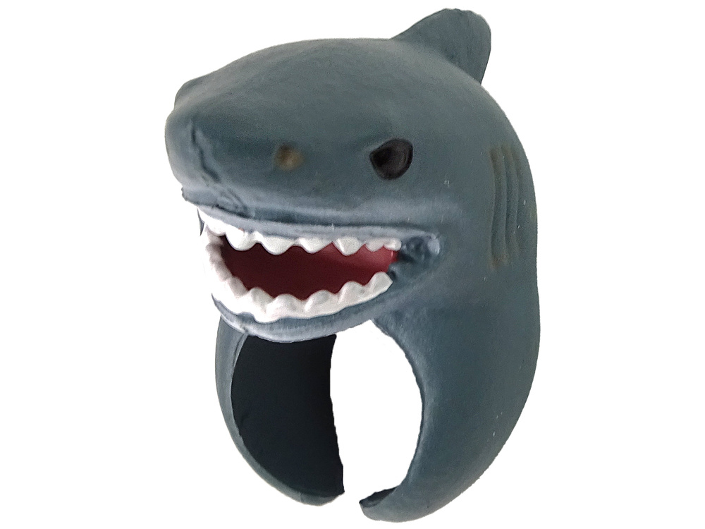 Pierścień przedstawia głowę rekina. Całość pomalowana nietoksycznymi farbami, całkowicie bezpieczne dla dzieci.