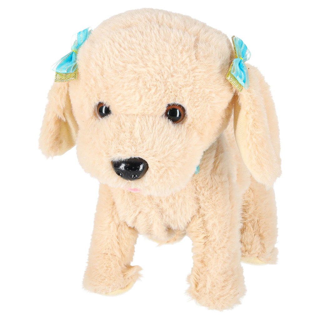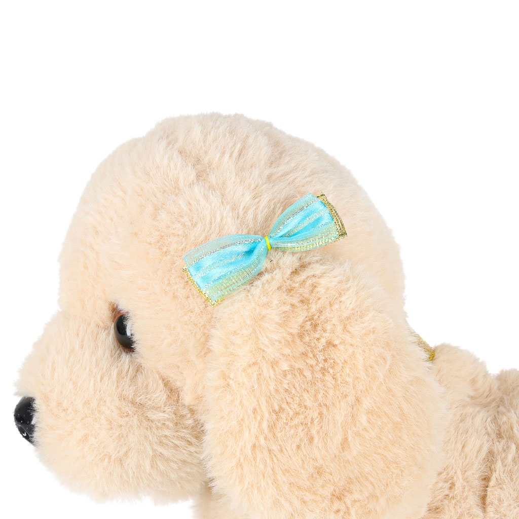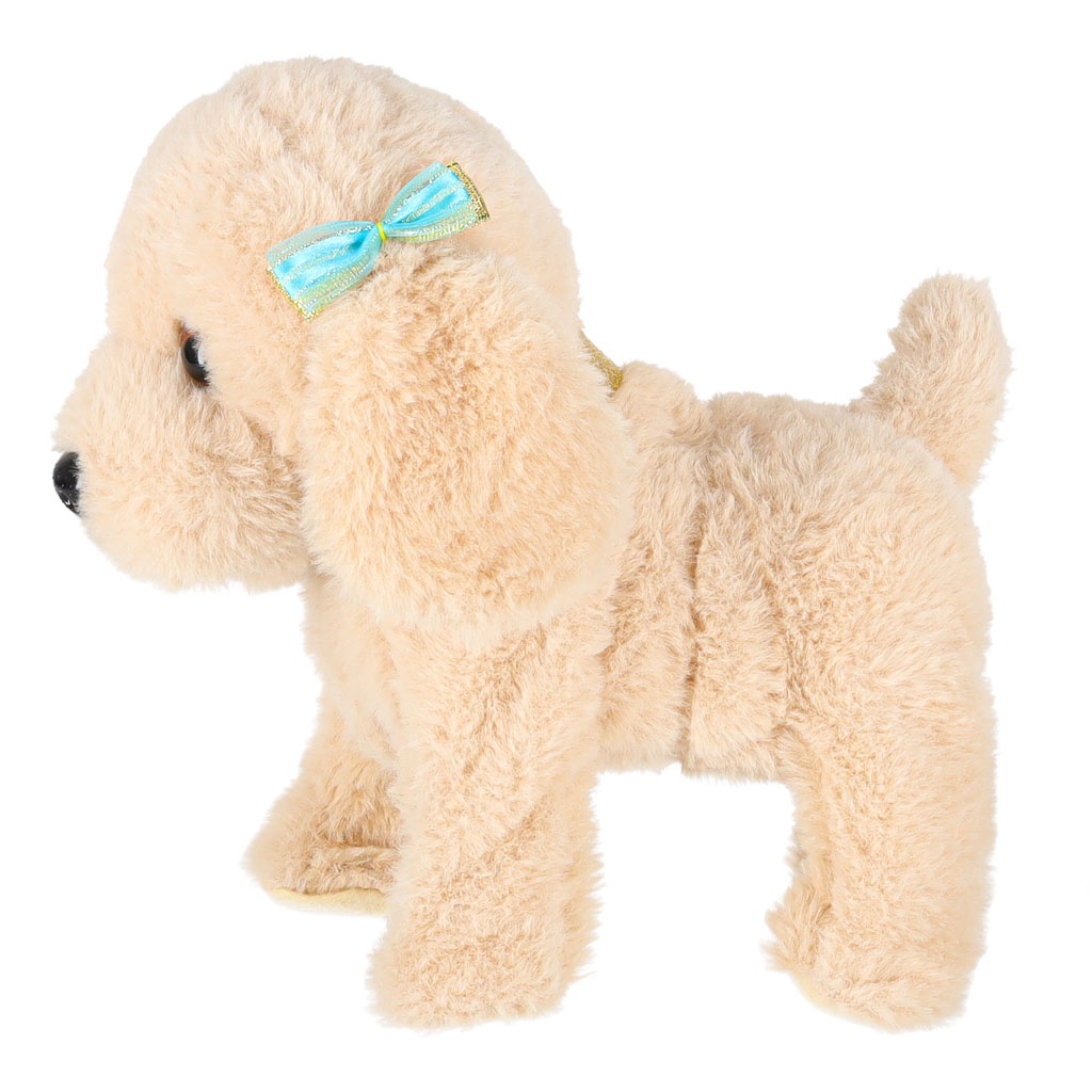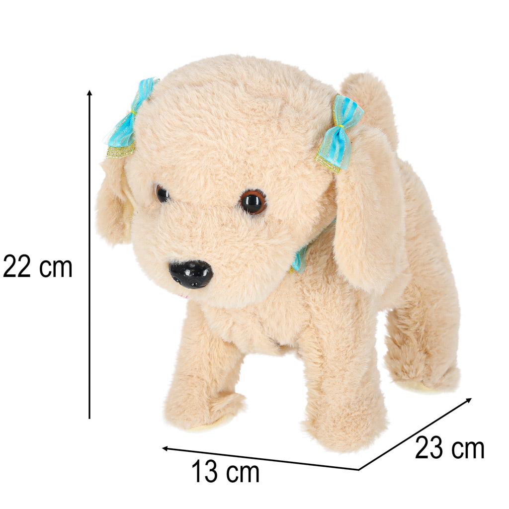 Ten uroczy piesek w kolorze beżowym z niebiesko-złotymi dodatkami to idealny towarzysz zabaw dla dzieci powyżej 3. roku życia. Dzięki różowej smyczy, maluchy mogą prowadzić swojego nowego przyjaciela wszędzie, gdzie tylko zechcą.