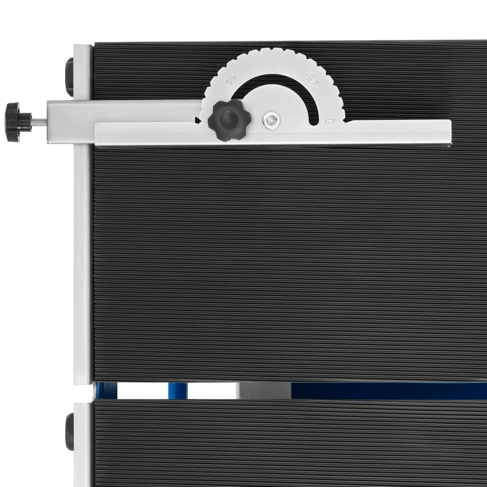 Regulowany kąt cięcia umożliwia łatwe dostosowanie narzędzia do indywidualnych potrzeb, co sprawia, że idealnie nadaje się do cięcia skosów, fazowania oraz tworzenia złożonych kształtów. Dodatkowo, składane nogi oraz dwa tylne koła ułatwiają transport i przechowywanie, co czyni tę piłę niezwykle praktycznym rozwiązaniem.