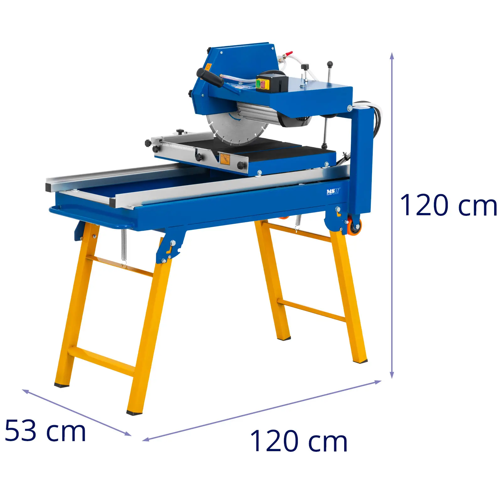 Wysoka jakość wykonania oraz stopień ochrony IP54 gwarantują, że urządzenie z powodzeniem zniesie intensywne użytkowanie. W zestawie znajduje się piła, tarcza diamentowa, koła transportowe oraz akcesoria montażowe.