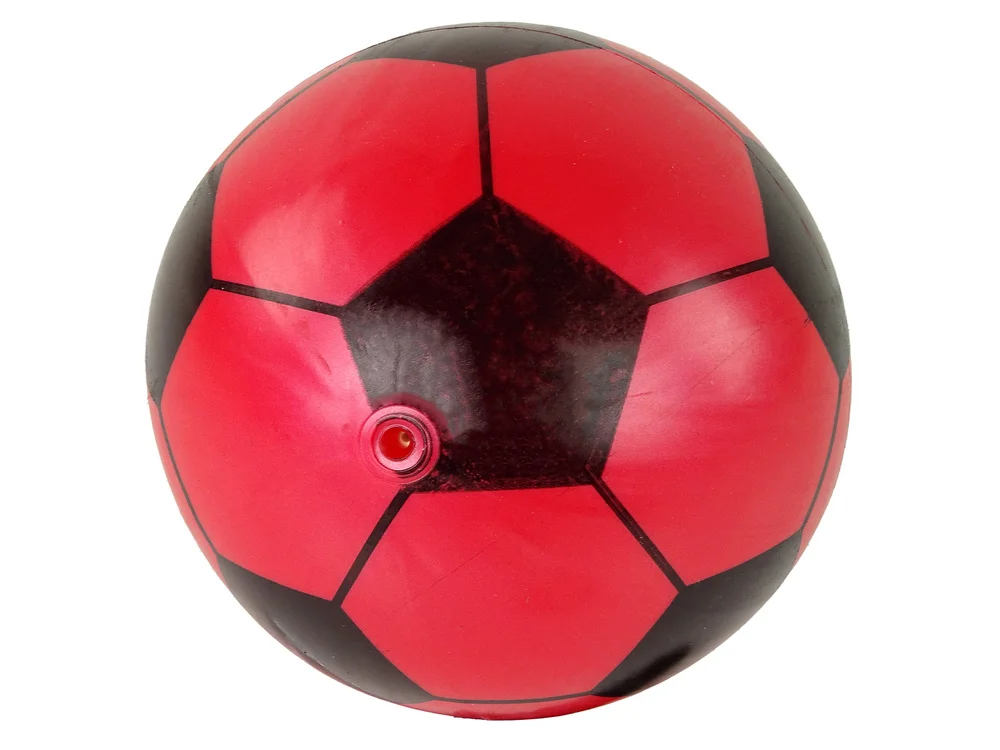Ta czerwona gumowa zabawka ma kształt i rozmiar zbliżony do tradycyjnej piłki do piłki nożnej. Jej powierzchnia jest gładka i elastyczna, a cała konstrukcja jest miękka, co sprawia, że jest bezpieczna dla dzieci i idealna do zabawy.