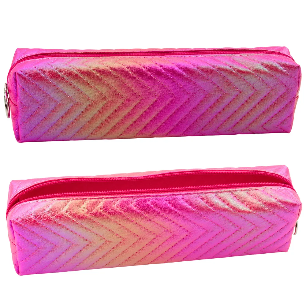 Stylowy piórnik z efektem metalicznego połysku to doskonały wybór dla każdej osoby, która ceni elegancki i nowoczesny wygląd swoich akcesoriów szkolnych. Wykonany z wysokiej jakości materiału, który odbija światło w zachwycający sposób, tworząc efekt gradientowego połysku w odcieniach różu i złota. Modny wzór w kształcie jodełki dodaje mu charakteru i sprawia, że wyróżnia się na tle innych piórników.