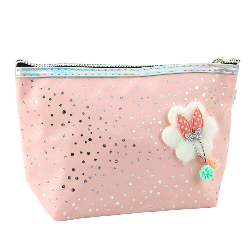 Stylowy i funkcjonalny piórnik-kosmetyczka w delikatnym odcieniu pudrowego różu z brokatowym wykończeniem to praktyczny dodatek zarówno do szkoły, jak i na co dzień. Dzięki uniwersalnej formie świetnie sprawdzi się jako piórnik na przybory szkolne lub kosmetyczka do przechowywania drobnych akcesoriów. Został wyposażony w solidny zamek błyskawiczny i poręczny uchwyt z karabińczykiem, który umożliwia wygodne przypięcie do plecaka lub noszenie na nadgarstku.